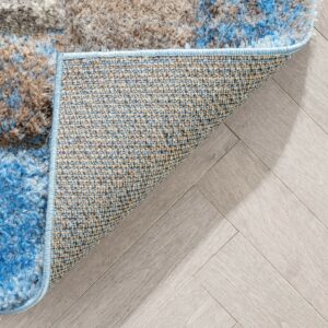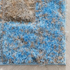 Well Woven Lolly Kenzo Retro Geometric Pattern Grey Light Blue 3’11 x 5’3 3D Texture Shag Area Rug