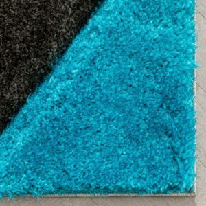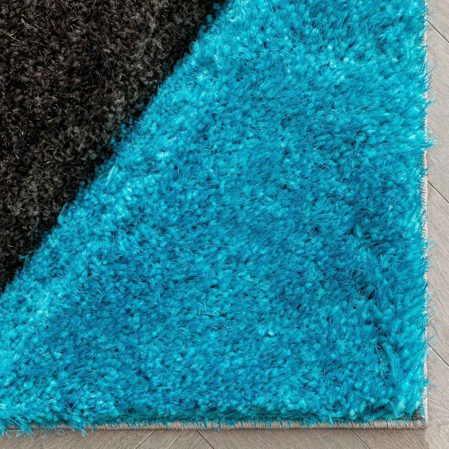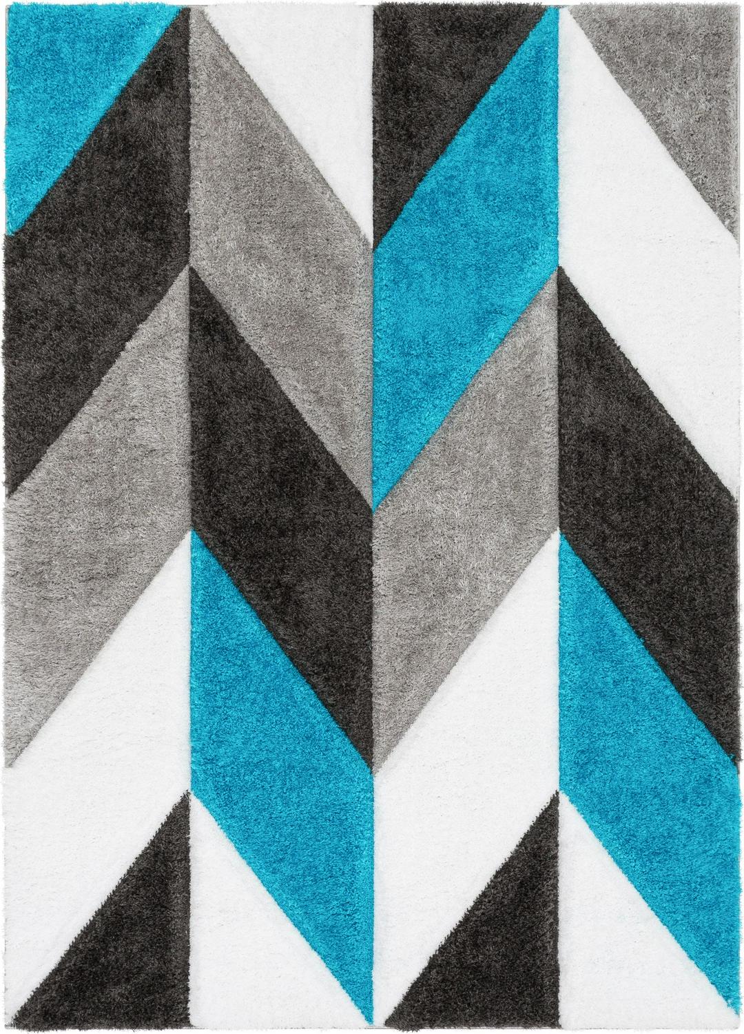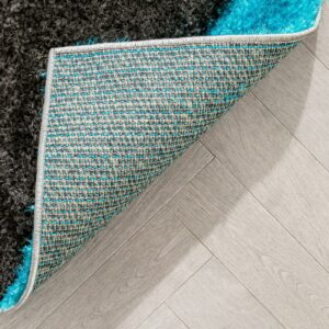 Well Woven Lolly Mika Retro Zig-Zag Pattern Teal Grey 3’11 x 5’3 3D Texture Shag Area Rug