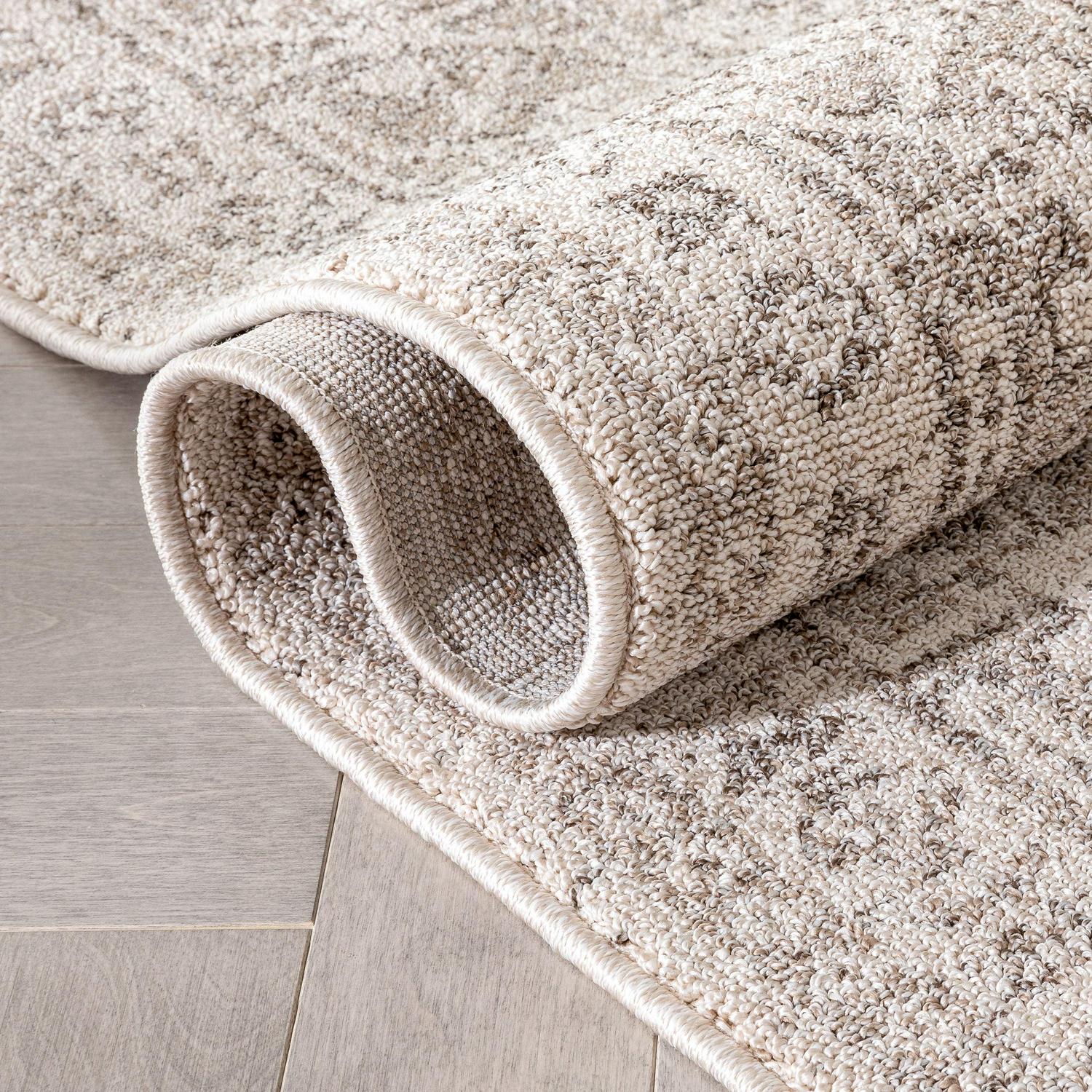 - Low, looped pile feels plush underfoot