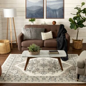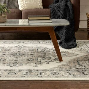 Well Woven Malfi Scafa Beige Vintage Medallion Oriental 7’10 x 10’6 Distressed Area Rug