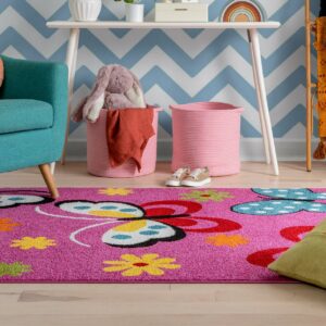 Well Woven Star Bright Daisy Butterflies Kids Area Rug