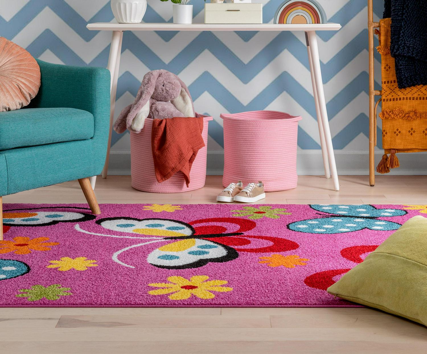 Bring a nature-inspired touch to your child’s space with the Well Woven Star Bright Daisy Butterflies Kids Area Rug. Designed with a fun medley of bright hues, this eye-catching rug features a pattern of flowers and butterflies. Both antimicrobial and stain resistant, this rug is crafted with durability in mind.