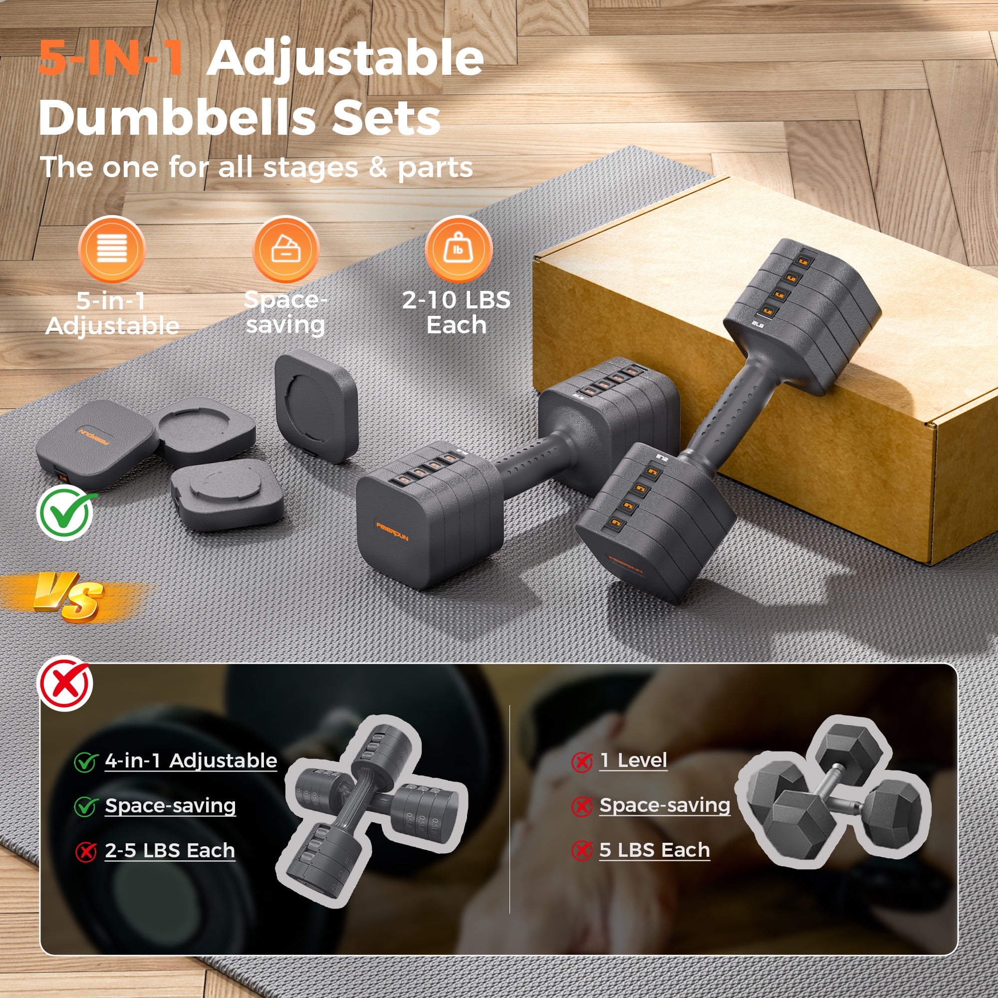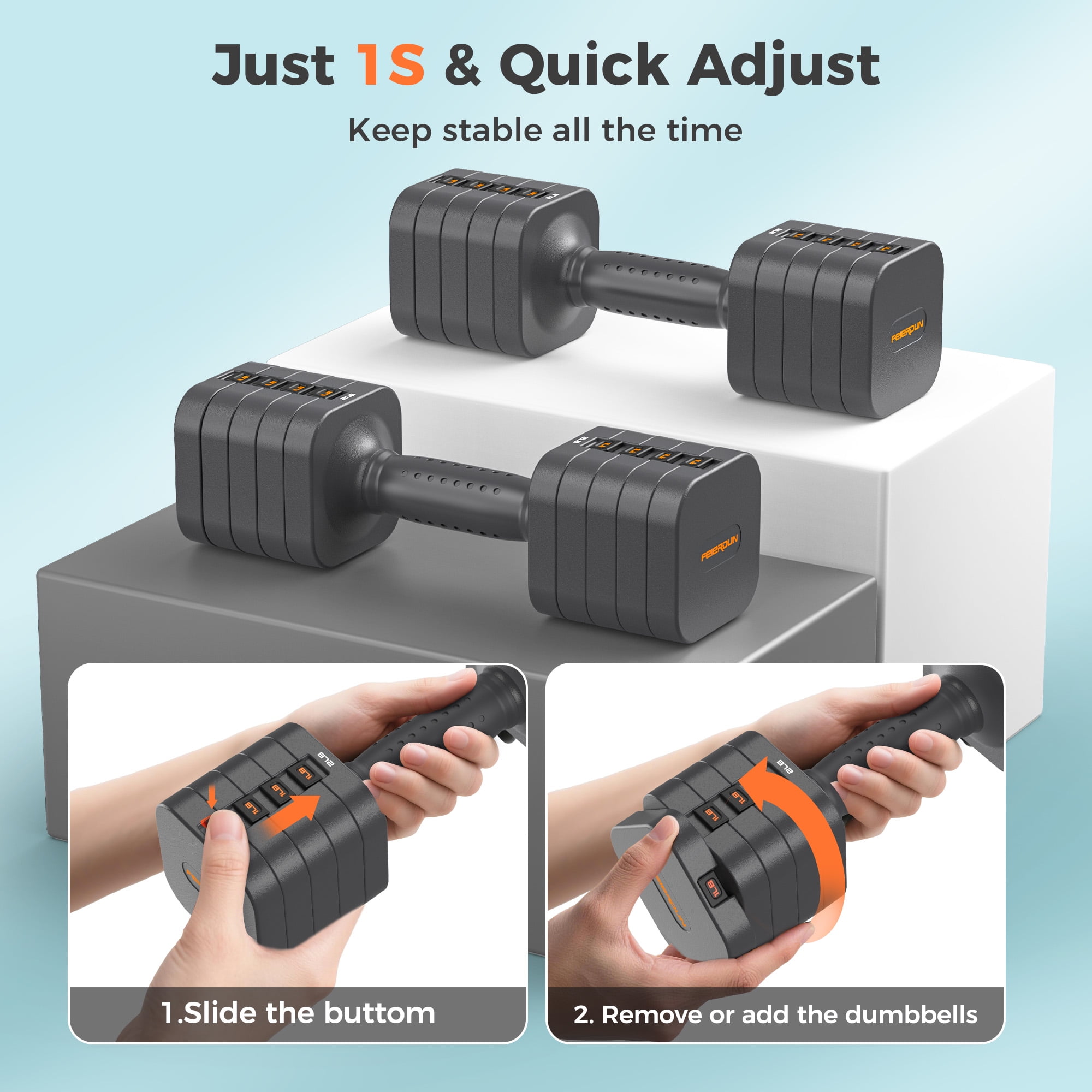 UPGO-WELLFIRE are committed to providing our clients with the best fitness equipment for a full body workout. 4-in-1 multifunctional training modes. With it, you can get a pair of dumbbells also barbells, kettlebells, and push-up stands, which help you do many exercises including bench presses, squats, etc. Different weight dumbbell plates can be combined freely and matched freely to meet the needs of various weights. Which meets the needs of whole-body training for men and women.