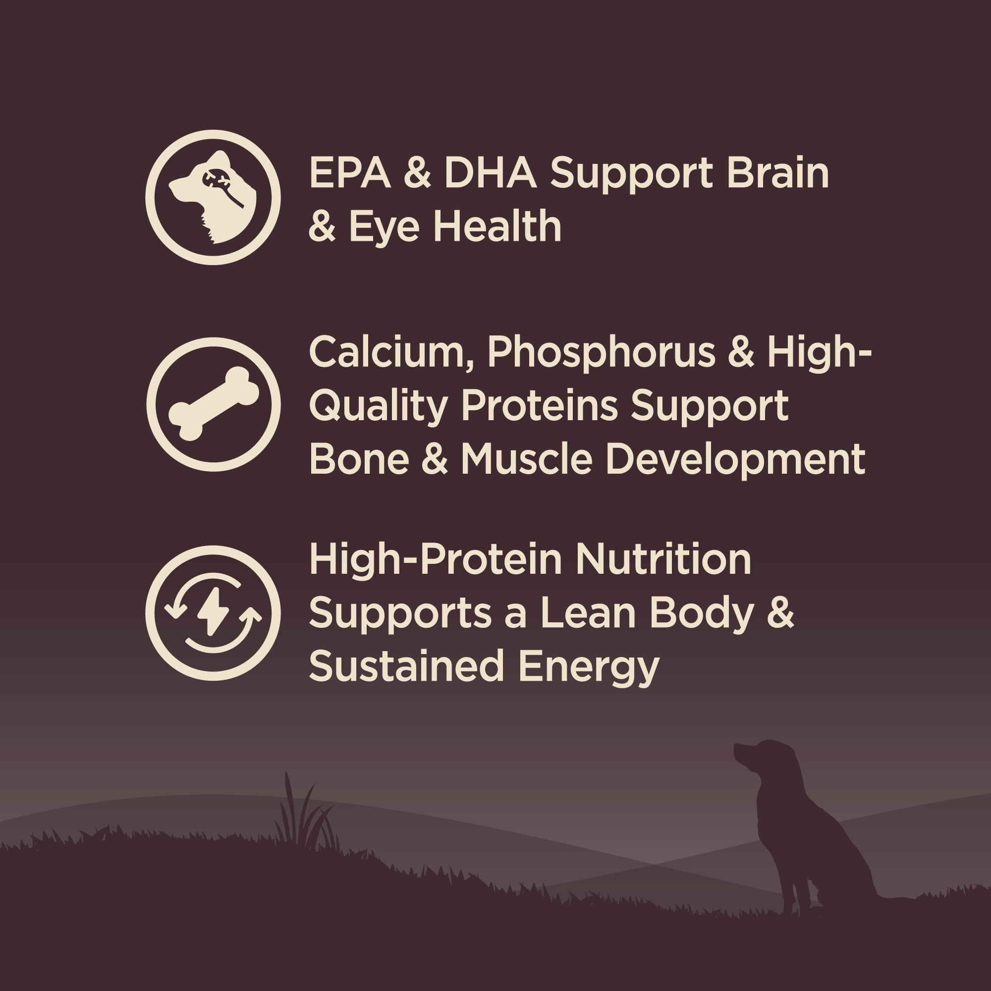 GRAIN-FREE SMALL BREED DRY PUPPY FOOD: Premium protein from responsibly sourced turkey is expertly balanced with nutrient rich superfoods for a complete and balanced meal, with guaranteed levels of nutrients your puppy needs to thrive. SUPPORTS HEALTHY BONE GROWTH AND BRAIN DEVELOPMENT: Guaranteed levels of DHA supports brain development, antioxidants support strong immune systems, probiotics for digestive health and calcium and phosphorus support healthy bone and muscle development. LEANER BODY MASS AND MUSCLE TONE: Based on the nutritional philosophy that dogs thrive on a natural diet mainly comprised of meat, this dry puppy food is made with 53% high quality protein ingredients. NO CORN, WHEAT, OR SOY: Contains only premium, all natural ingredients with no poultry by-products, wheat, wheat gluten, corn, soy, artificial colors, or preservatives. Manufactured in a facility that also processes grains. GLOBALLY SOURCED INGREDIENTS: We prepare each of our diets in our own state of the art facility; recipes crafted with wholesome, non-GMO ingredients chosen for their nutritional benefits. Available Product Sizes: 4 Pound Bag, 12 Pound Bag