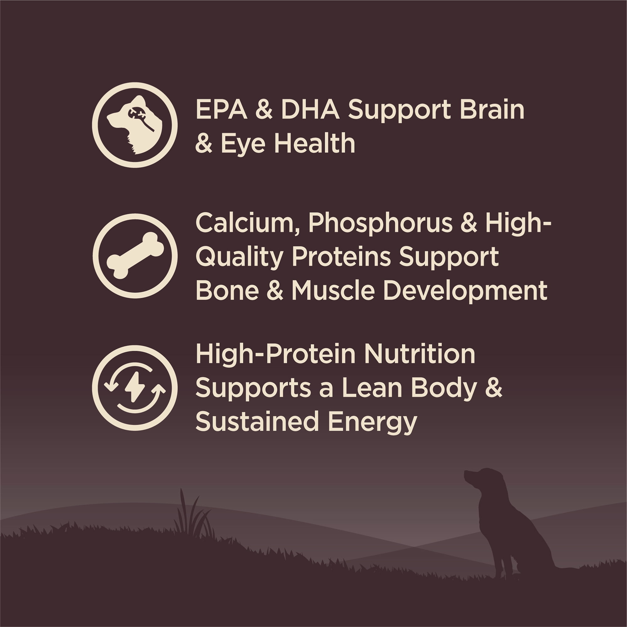 ADVANCED NATURAL NUTRITION TO FUEL YOUR LARGE BREED PUPPY’S BEST LIFE: Premium protein expertly balanced with nutrient rich superfoods for a complete and balanced dog food, with guaranteed levels of the nutrients your large breed dog needs to thrive SUPPORTS HEALTHY GROWTH AND DEVELOPMENT: Guaranteed levels of DHA from Salmon Oil supports brain development, antioxidants support strong immune systems and calcium and phosphorus support healthy bone and muscle development LEANER BODY MASS AND MUSCLE TONE: Wellness CORE dog food is made with a high concentration of protein from fresh meat ingredients SUPPORTS HEALTHY SKIN AND COAT with guaranteed levels of omega fatty acids from ingredients such as flaxseed and salmon oil WHOLE BODY HEALTH: Supported by omega fatty acids, antioxidants, glucosamine, probiotics and taurine for a healthy heart PRODUCED WITH PRIDE: We prepare each dry kibble recipe in our own state of the art facility in Indiana using only the finest globally sourced ingredients, to craft delicious natural recipes with wholesome, non GMO ingredients chosen for their nutritional benefits