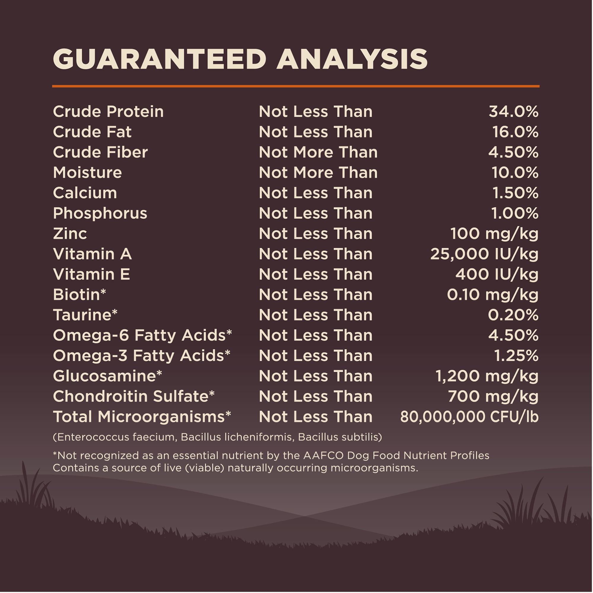 ALL NATURAL ADULT DRY DOG FOOD: Premium protein from responsibly sourced turkey is expertly balanced with nutrient rich superfoods for a complete and balanced dog food, with guaranteed levels of all the nutrients your dog needs to thrive. LEANER BODY MASS AND MUSCLE TONE: Based on the nutritional philosophy that dogs thrive on a natural diet mainly comprised of meat, this dog food is made with 34% high quality protein ingredients. SUPPORTS HEALTHY COAT & DIGESTIVE HEALTH: Guaranteed levels of omega fatty acids from ingredients such as flaxseed and salmon oil support healthy skin and coat, glucosamine for strong joints, probiotics for digestive health and taurine for a healthy heart. NO CORN, WHEAT, OR SOY: Contains only premium, all natural ingredients with no poultry by-products, wheat, wheat gluten, corn, soy, artificial colors, or preservatives. GLOBALLY SOURCED INGREDIENTS: We prepare each of our diets in our own state of the art facility; recipes crafted with wholesome, non-GMO ingredients chosen for their nutritional benefits. Available Product Sizes: 4 Pound Bag, 24 Pound Bag