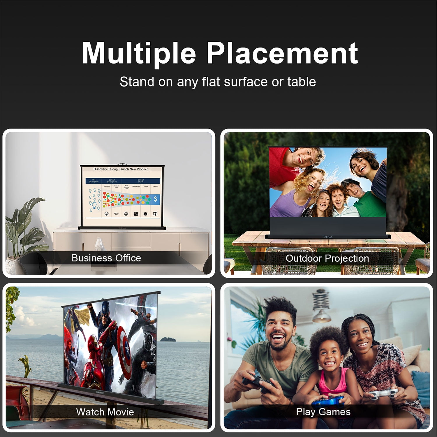 WEMAX 50″ Inch Portable Projector Screen, 6 Gains ALR Movie Screen, Pull Up Tabletop Ambient Light Rejecting Screen, 16:9 HD Retractable for Travel Camping Indoor Outdoor Use