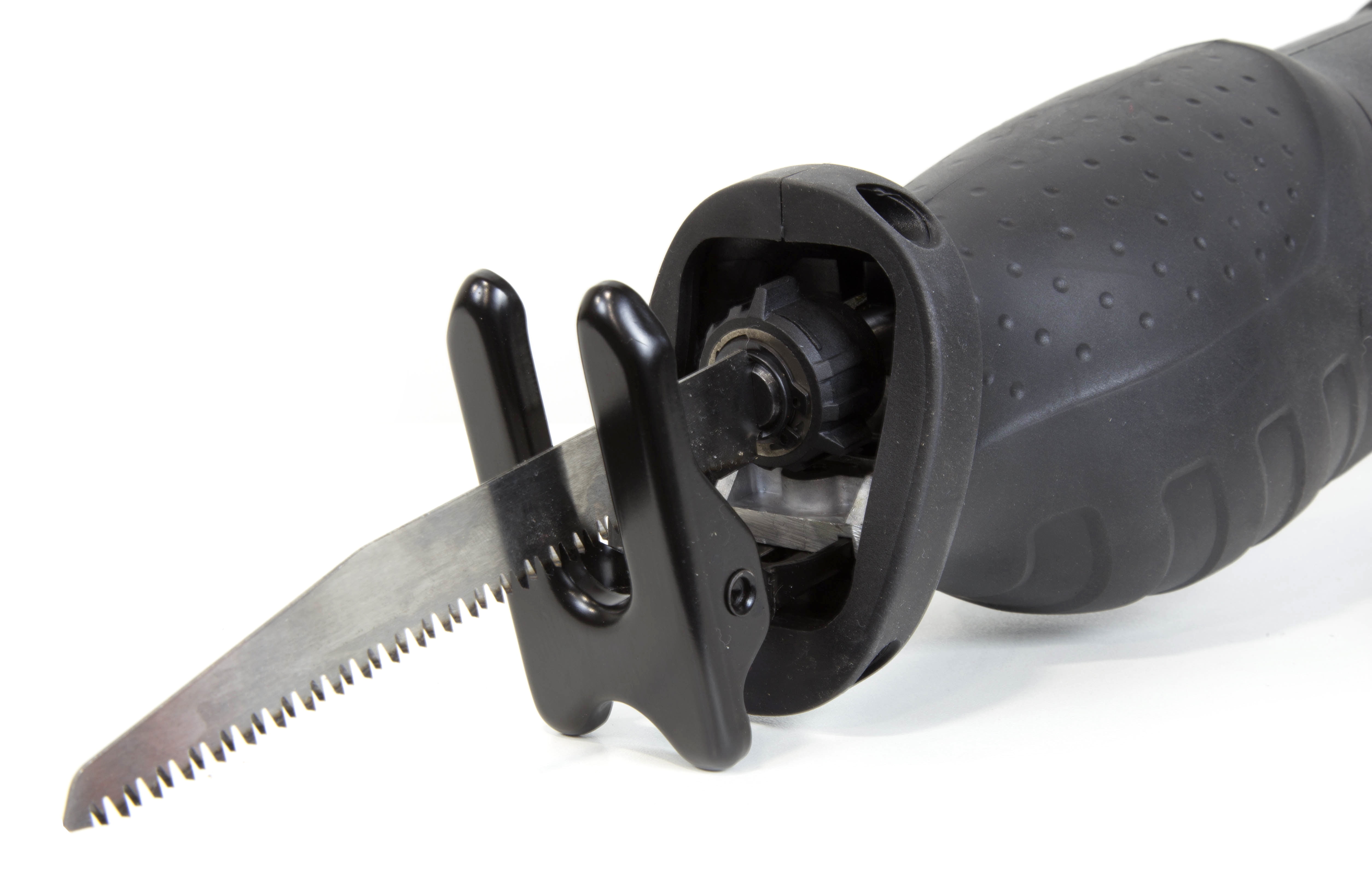 WEN 10-Amp 8-Position Variable Speed Reciprocating Saw: 10-amp motor handles up to 4-1/2 inches of wood and 3/5 inches of metal Pressure-sensitive trigger provides anywhere from 0 to 2800 strokes per minute Pivoting head features eight different stops for a variety of jobs: one every 45 degrees Twist-lock quick-release blade holder allows for simple tool-free blade changes Includes one metal blade, one wood blade, a soft rubber-grip front handle, and a two-year warranty