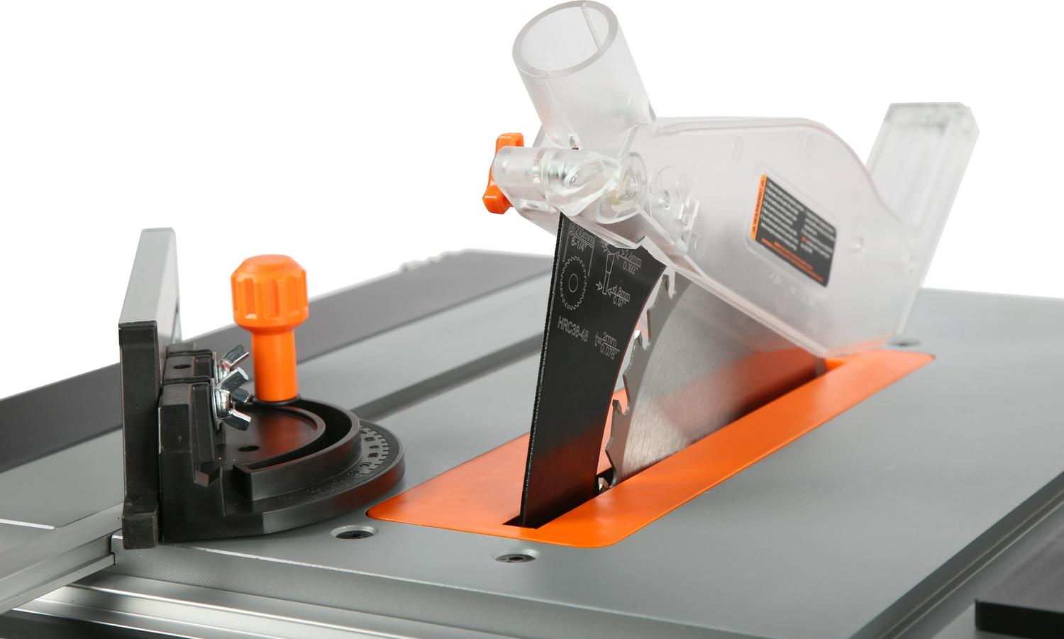 – Includes an adjustable rip fence, auxiliary fence, miter gauge, push stick, dust port adapter, tool-free blade guard, riving knife, onboard storage, and a two-year warranty