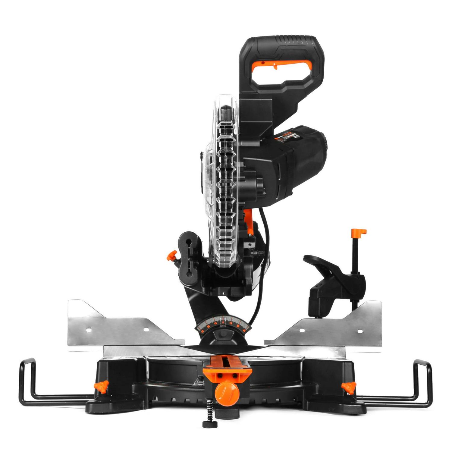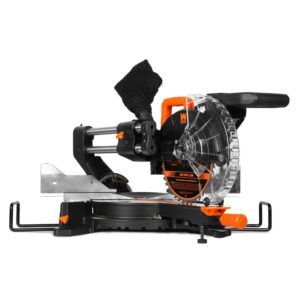 – Powerful 15-amp motor crosscuts boards up to 12 inches wide and 3.75 inches thick