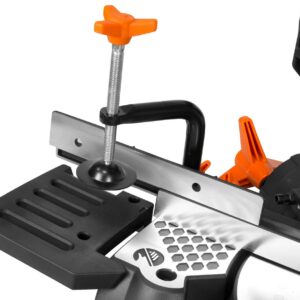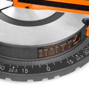 - Miter 45 degrees in either direction (featuring 9 miter stops) or bevel 45 degrees to the left