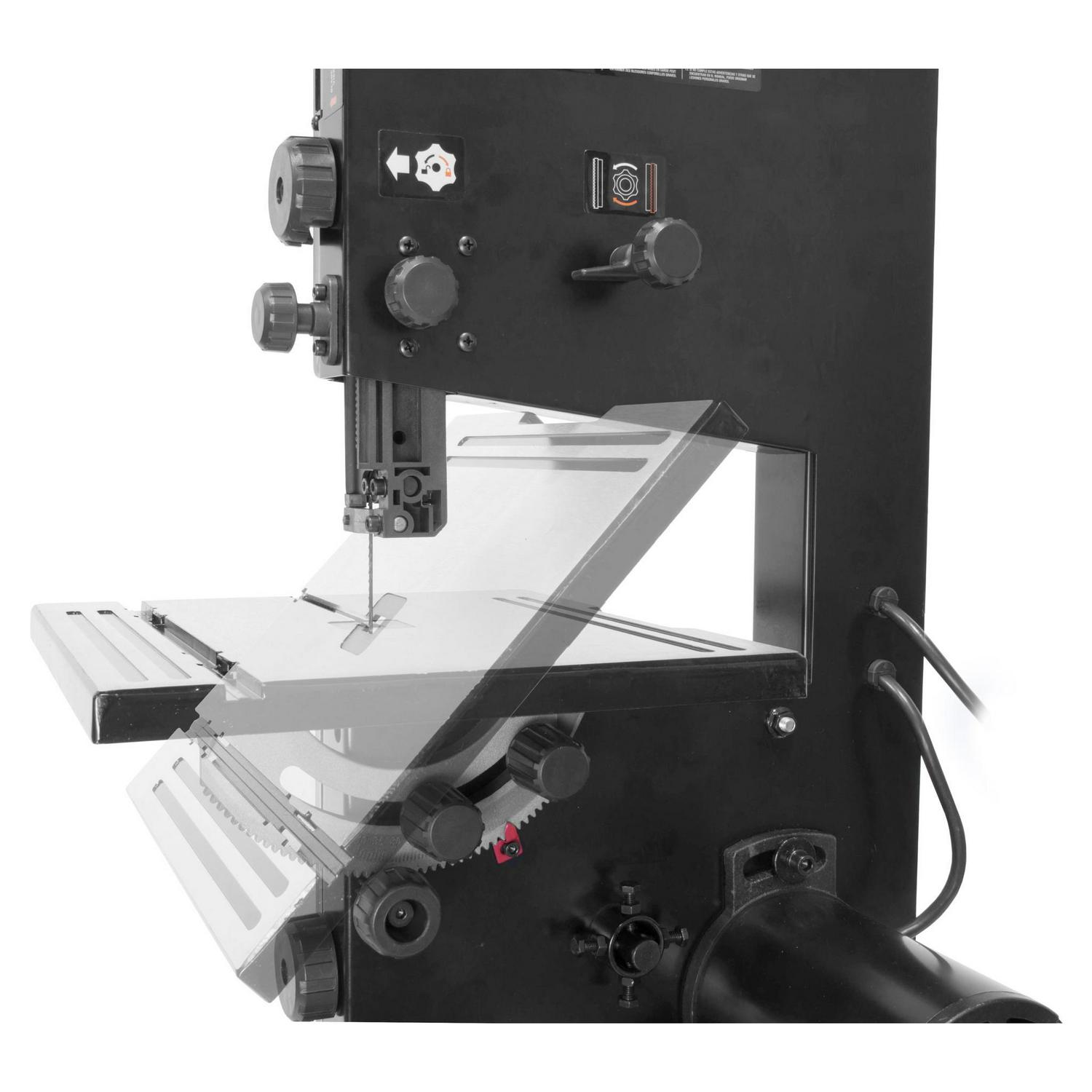 - Spacious 12-1/4 x 11-7/8-inch work table bevels up to 45 degrees