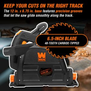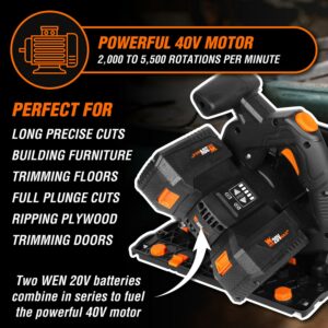 WEN 20V Max 6.5-Inch Cordless Brushless Plunge Cut Variable Speed Track Saw with Two 4.0 Ah Batteries and Charger