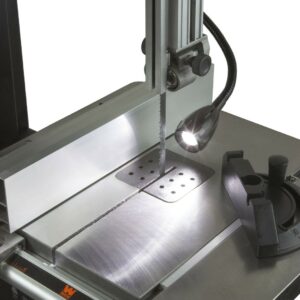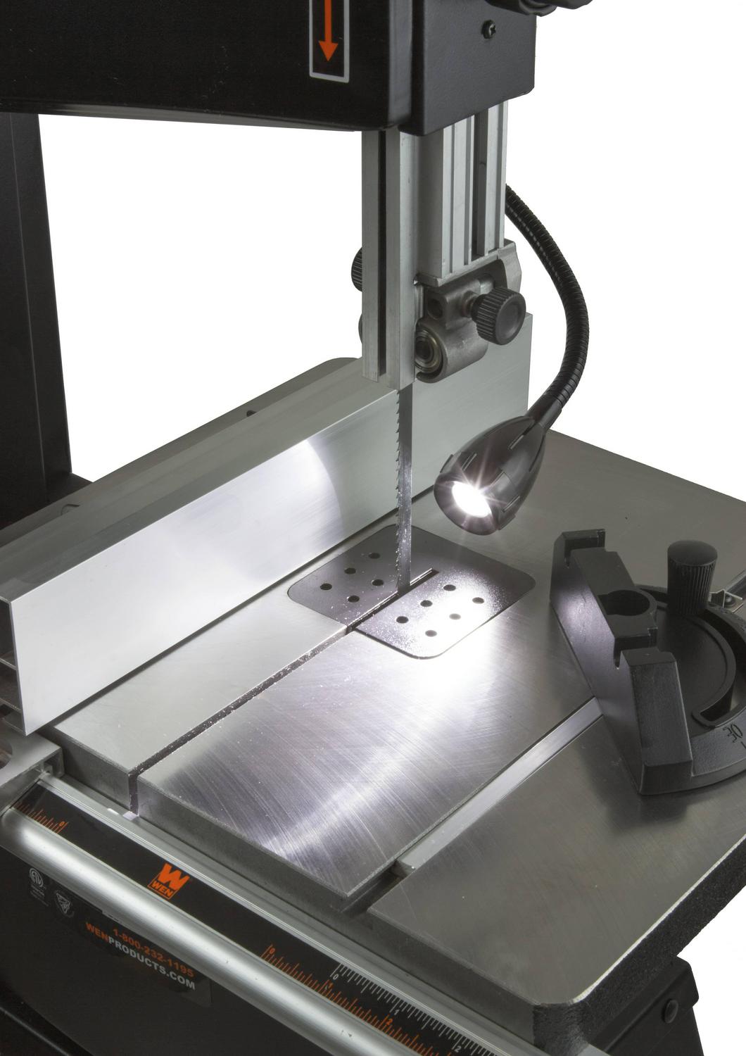 – Spacious 14-1/8 x 12-1/2 inch cast aluminum work table bevels up to 45 degrees