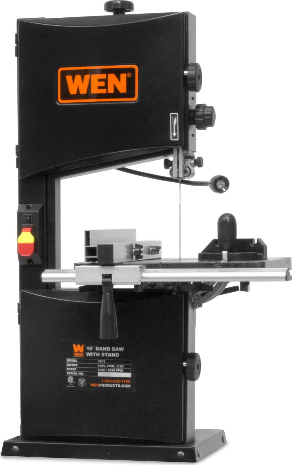 Remember when power tools were actually powerful Reminiscent of your Grandpa s bandsaw, the WEN 10-Inch Two-Speed Band Saw is the perfect companion for any workshop. With a 3.5-amp motor and a 9-3/4 inch throat, this beast will attack boards with cuts up to six inches deep and 9-3/4 inches wide. Two-speed operation allows for speeds of either 1520 or 2620 FPM. The design of this saw uses 72-inch blades anywhere from 1/8 to 1/2 inches in size for a variety of both intricate and powerful cuts. The spacious work table measures in at 14 x 12-1/2 inches in size and can be swiveled up to 45 degrees. This package includes a flexible work light to illuminate the worktable, a 3-in-1 dust port to fit a variety of dust extractor hoses (1-3/4, 2-3/4, 4 inches), a fence for creating straight cuts, and a miter gauge for angled cuts. Ball-bearings give the blade smooth operation and a long lasting life for years of dependable service. The easy-to-assemble stand elevates the bandsaw without sacrificing space on the shop s work bench. And because it s a WEN product, your WEN 10-Inch Two-Speed Band Saw comes backed by a two-year warranty, a nationwide network of skilled service technicians and a friendly and helpful customer phone line all to make sure you remember WEN. Remember when you had a versatile and powerful woodworking saw Remember WEN.