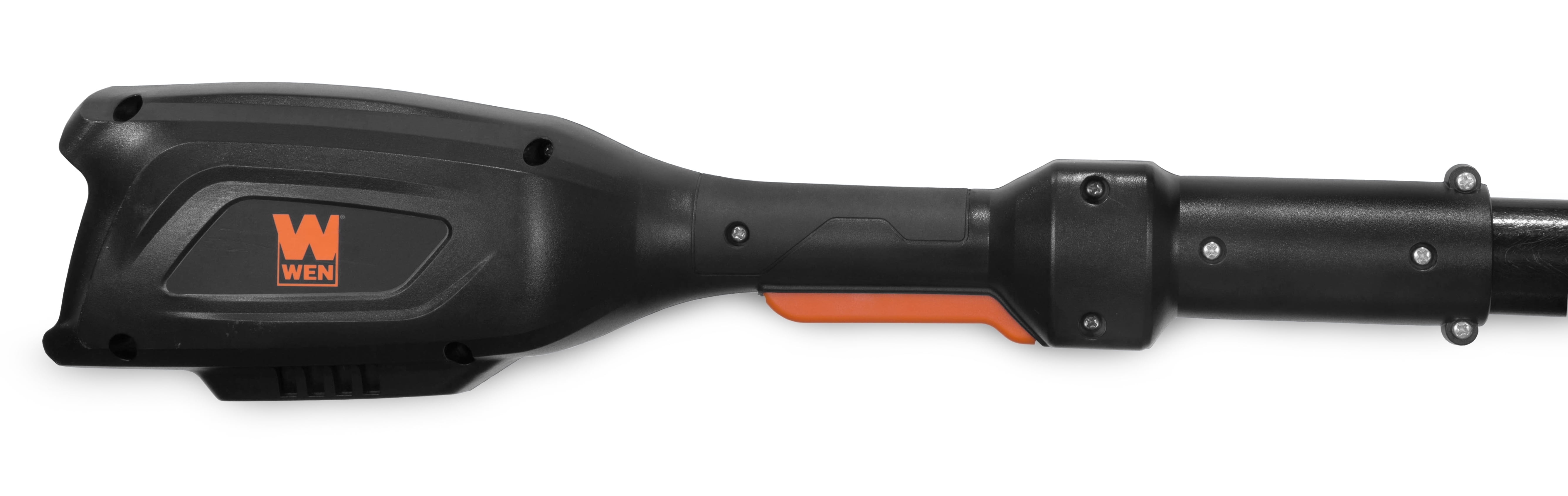 Remember when you could reach the unreachable? The WEN 40V Max Lithium Ion 10-Inch Cordless Pole Saw combines a high quality chainsaw with the most recent advances in pole technology. Extend the saw anywhere from 7.1 feet up to 10 feet in length, helping you to cut even the most difficult branches. Our lightweight brushless motor limits maintenance needs while elongating the lifespan of the unit. The adjustable head pivots 30 degrees in one direction while the 40V lithium ion battery rotates the motor up to 4800 times per minute. Our design allows for tool-free blade changes and adjustments as well as emission-free operations. Eliminate the hassles of most pole saws, meaning no more gasoline, no more extension cords, and minimal upkeep. Compatible with the WEN 40401 40V Max Lithium Ion- 2Ah Rechargeable Battery, WEN 40404 40V Max Lithium-Ion 4Ah Rechargeable Battery, and WEN 40400C 40V Max Lithium-Ion Quick Charger (sold separately). This package includes a 10-inch guide bar, a 10-inch chain (3/8 inch pitch, .05 inch gauge, 40 drive links), a shoulder strap, and a scabbard. And because its a WEN product, your 40V pole saw comes backed by a two-year warranty, a nationwide network of skilled service technicians and a friendly customer help line all to make sure you remember WEN.