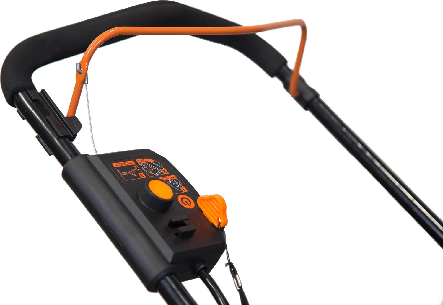 – Adjust the cutting height between six different stops ranging from 1.5 to 4 inches