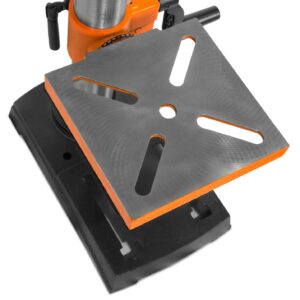 – Includes a laser, adjustable depth stop, beveling 8 by 7.5-inch work table, 1/2-inch capacity keyed chuck, a chuck key with onboard storage, and a two-year warranty