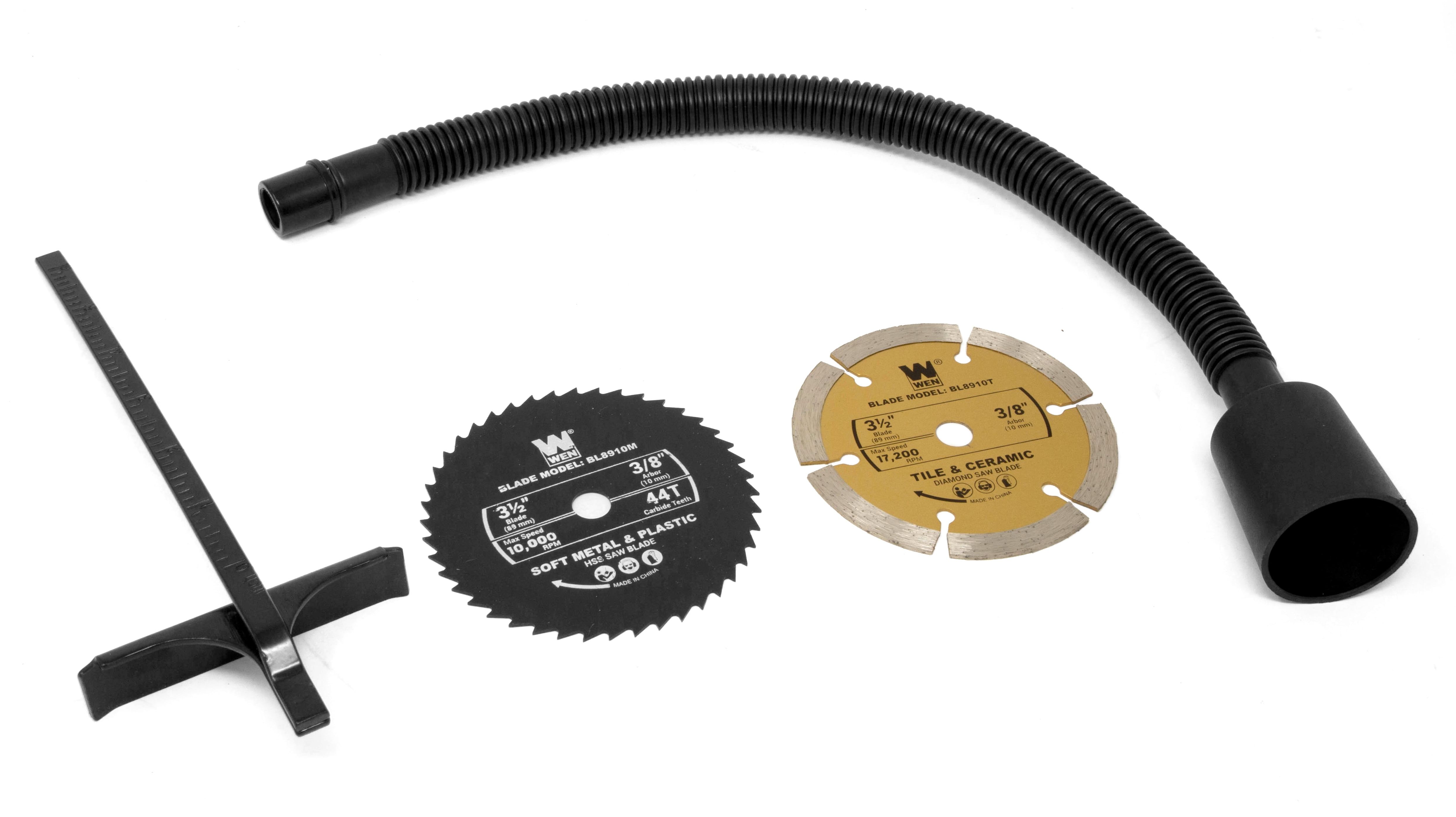 Remember when you could make cuts quickly and easily. The WEN 5-Amp Plunge Cut 3-1/2-Inch Mini Circular Saw provides versatile and powerful performance all in the palm of your hand. Its compact design weighs in at a mere 5 pounds, limiting fatigue during operation and making for easy storage between jobs. The 5-amp motor provides maximum torque, spinning the 3-1/2-inch blade (89mm, 10mm arbor) up to 4500 RPM. Attack boards up to 1-1/8 inch in thickness. Adjust the depth stop to your desired cutting depth for the perfect plunge cut in even the hardest of woods. Your WEN Compact Circular Saw also comes packed with accessories, including a carbide-tipped wood-cutting blade, a diamond-coated tile-cutting blade, a soft metal and plastic-cutting blade, a 5-inch rip fence, a dust extraction tube, and a convenient blow-mold carrying case, complete with storage compartments for all your accessories. And, because it’s a WEN product, your handheld circular saw comes backed by a nationwide network of skilled service technicians, a friendly customer help line and a two year warranty, all to make sure you remember WEN.