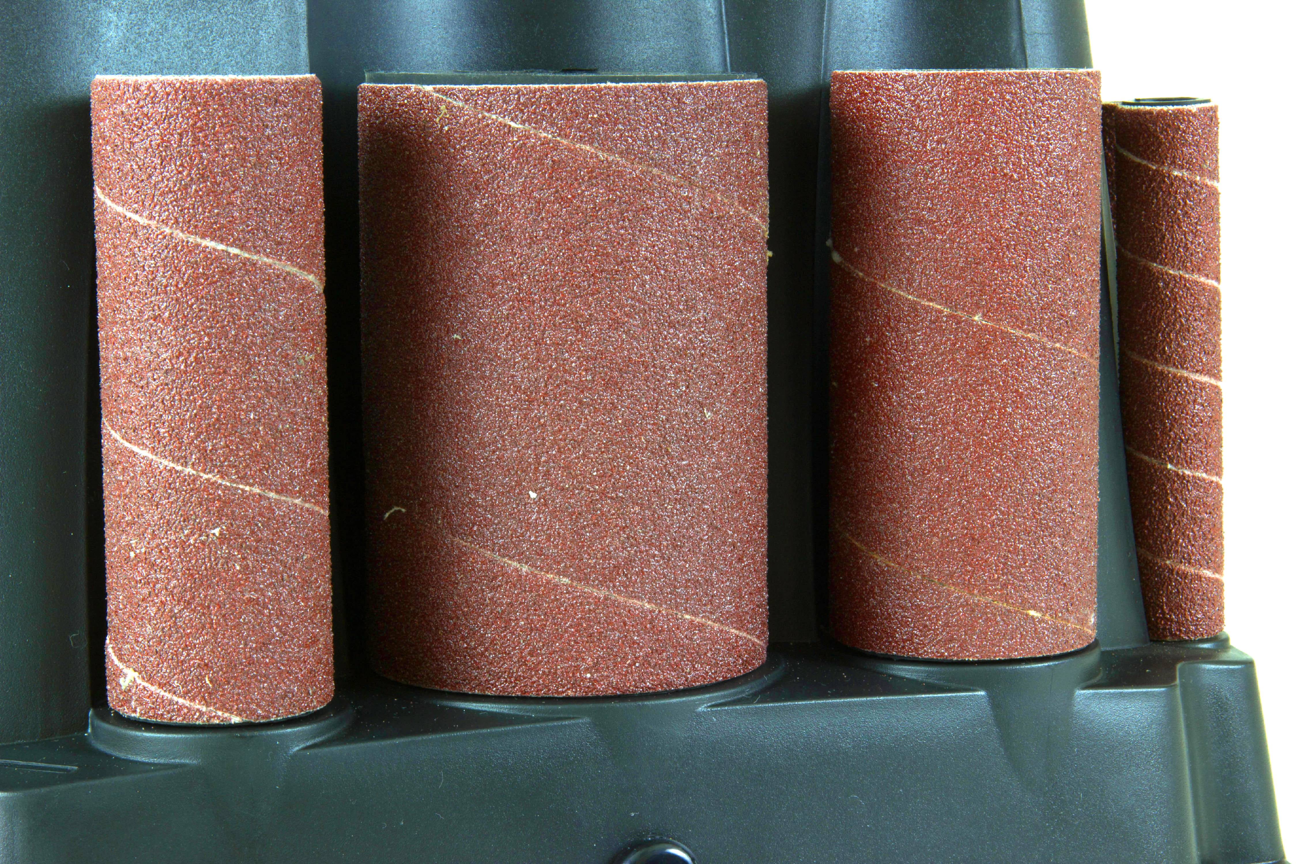 Powerful 1/2 HP 3.5 Amp motor provides 58 OPM and 2000 RPM Includes six 80-Grit sanding sleeve sizes for a variety of curvatures: 1/2 in., 3/4, in., 1 in., 1-1/2 in., 2 in., 3 in. Features onboard storage for all accessories along with a dust collection port for hooking in a dust extractor Attach the dust collector of your choice to the onboard dust port to minimize clean-up Backed by a two-year warranty