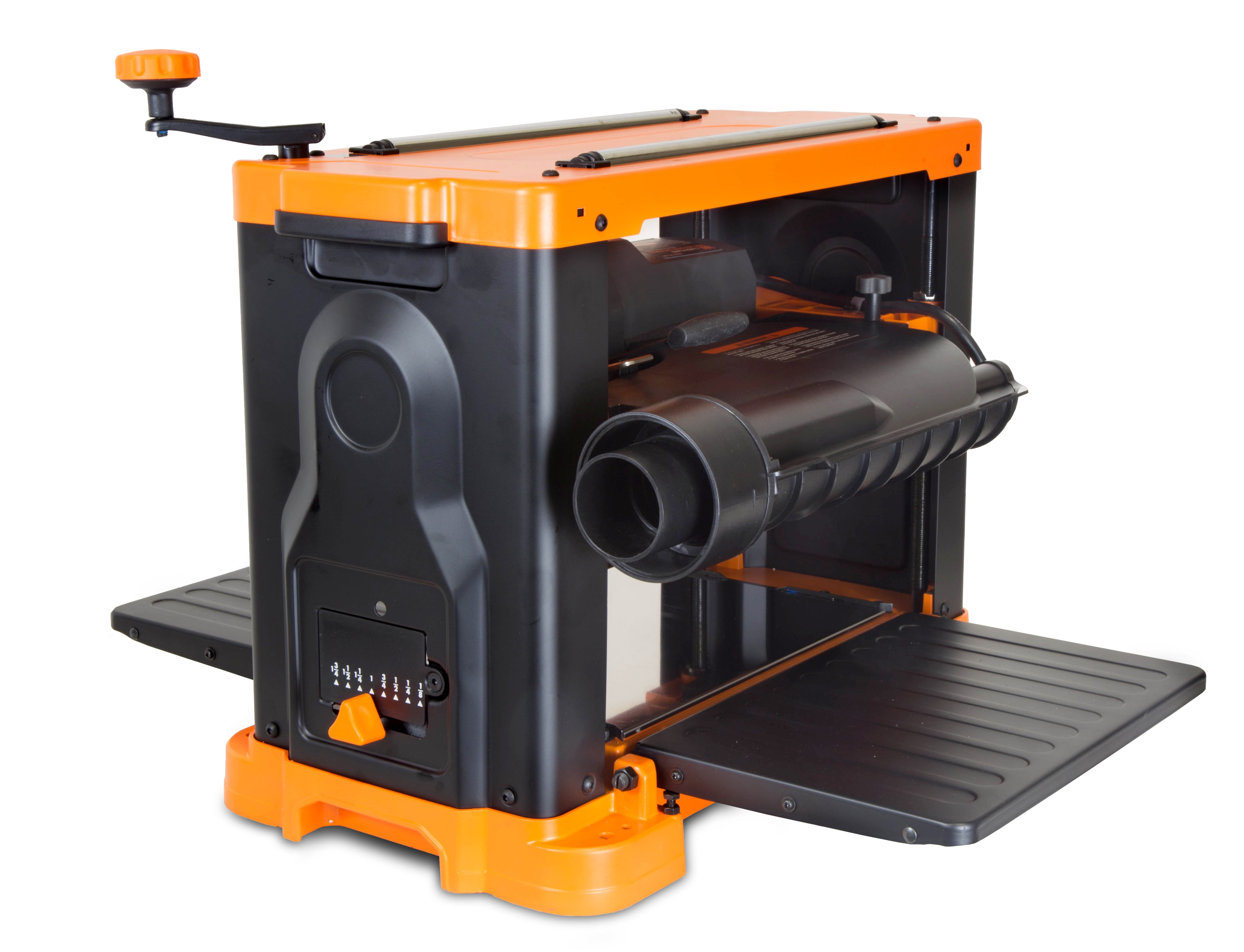 Remember when you brought those old, jagged boards back to life. The WEN 13-Inch Benchtop Thickness Planer repurposes rough and worn wood to give it an exceptionally smooth finish. The 15-amp motor rotates the cutterhead over 10,000 RPM at a 26 feet per minute feed rate. Combine that with the heavy-duty cast-iron base for a sturdy planer that does not walk or wobble during operation. The handy depth adjustment knob makes it easy to take off anywhere from 0 to 1/8 of an inch per pass. The adjustable dust port removes chips and sawdust from the workpiece and blasts them out of the way. The onboard depth stop allows users to achieve an exact workpiece thickness with maximum precision. This package also includes height-adjustable infeed and outfeed tables to limit snipe while providing extra support to your workpiece during planning. Easily mount the planer to a work surface or stand (such as the WEN MSA658 Planer Stand) using the predrilled base holes. Compatible with the WEN BP510H Replacement Spiral Blades. And because it’s a WEN product, this planer comes backed by a nationwide network of skilled service technicians, a helpful customer support line and a two-year warranty.