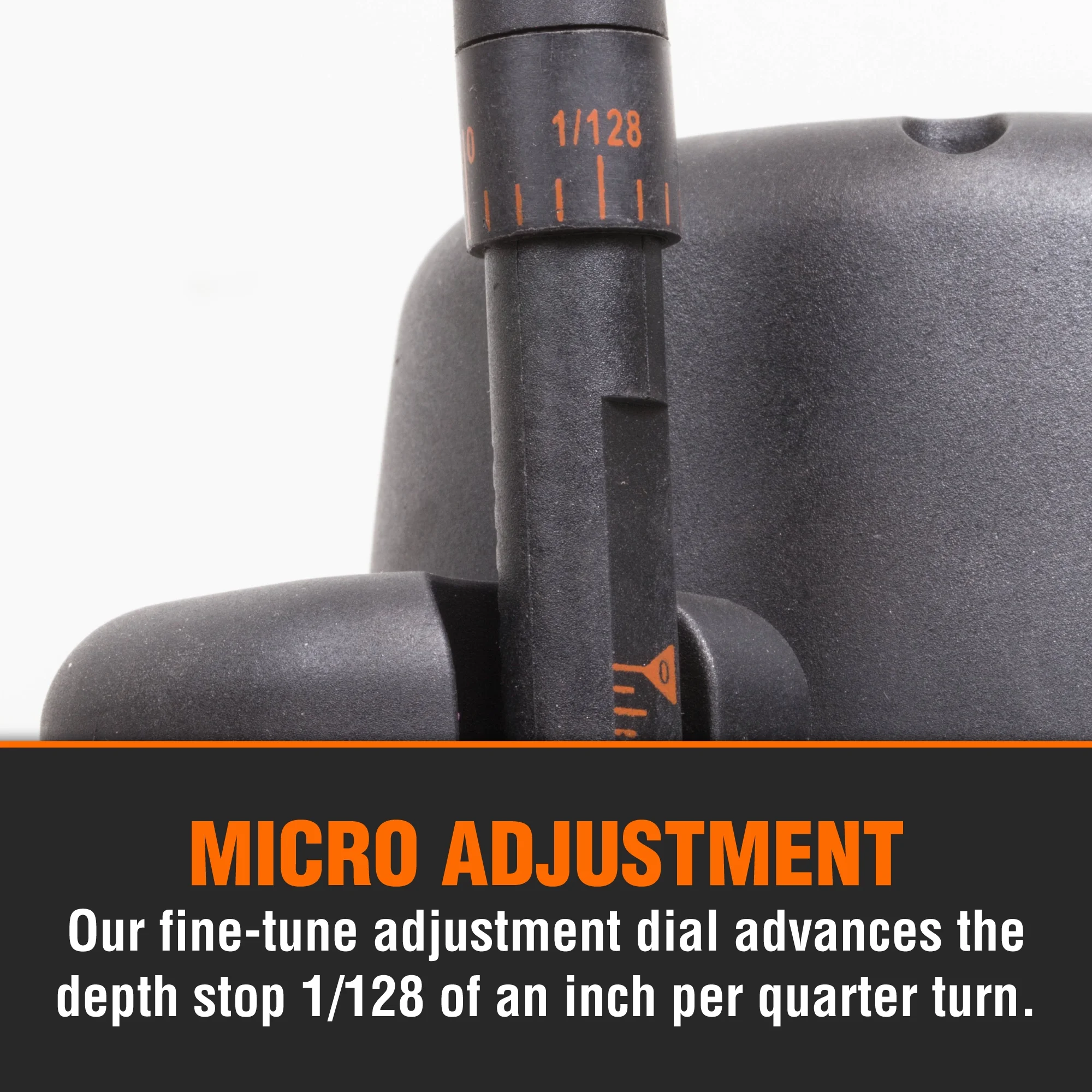 Plunging base locks in downward position for functionality as both a plunge and a fixed router Accepts both 1/4 and 1/2-inch router bits with a plunge depth of up to 2-3/8 inches 7-stop turret combined with both macro and micro-adjustment dials maximize precision