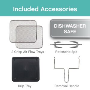 – Six Cooking Functions – This convenient oven has the functionality to cook meals and snacks for every day and every need. Air Fry, Bake, Roast, Rotisserie, Dehydrate, and Re-Heat cooking functions.