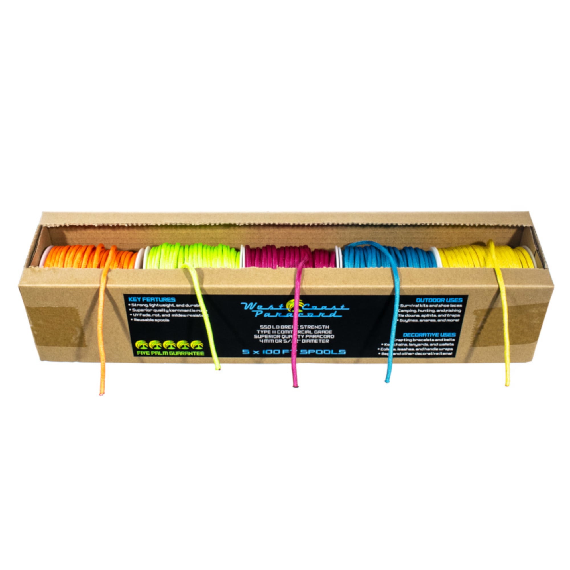 West Coast Paracord 550 Polyester Paracord Box Set – 5 x 100 ft Spools – Various Color Set Options