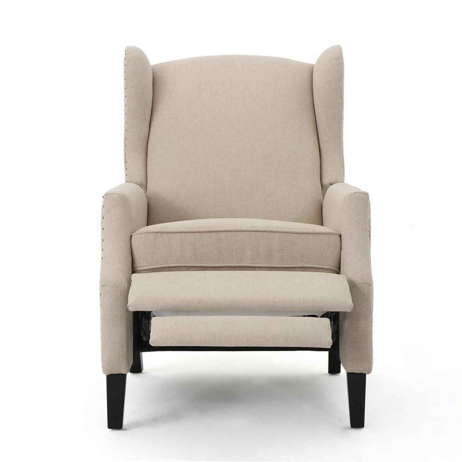 Westeros Traditional Wingback Fabric Recliner Chair This wingback, traditional recliner is an ideal chair for any room in your home. Featuring a studded border on the sides, this recliner is both stylish and comfortable with its extra padded cushion. This recliner features smooth lines that complement any d cor along with a soft color pallet.