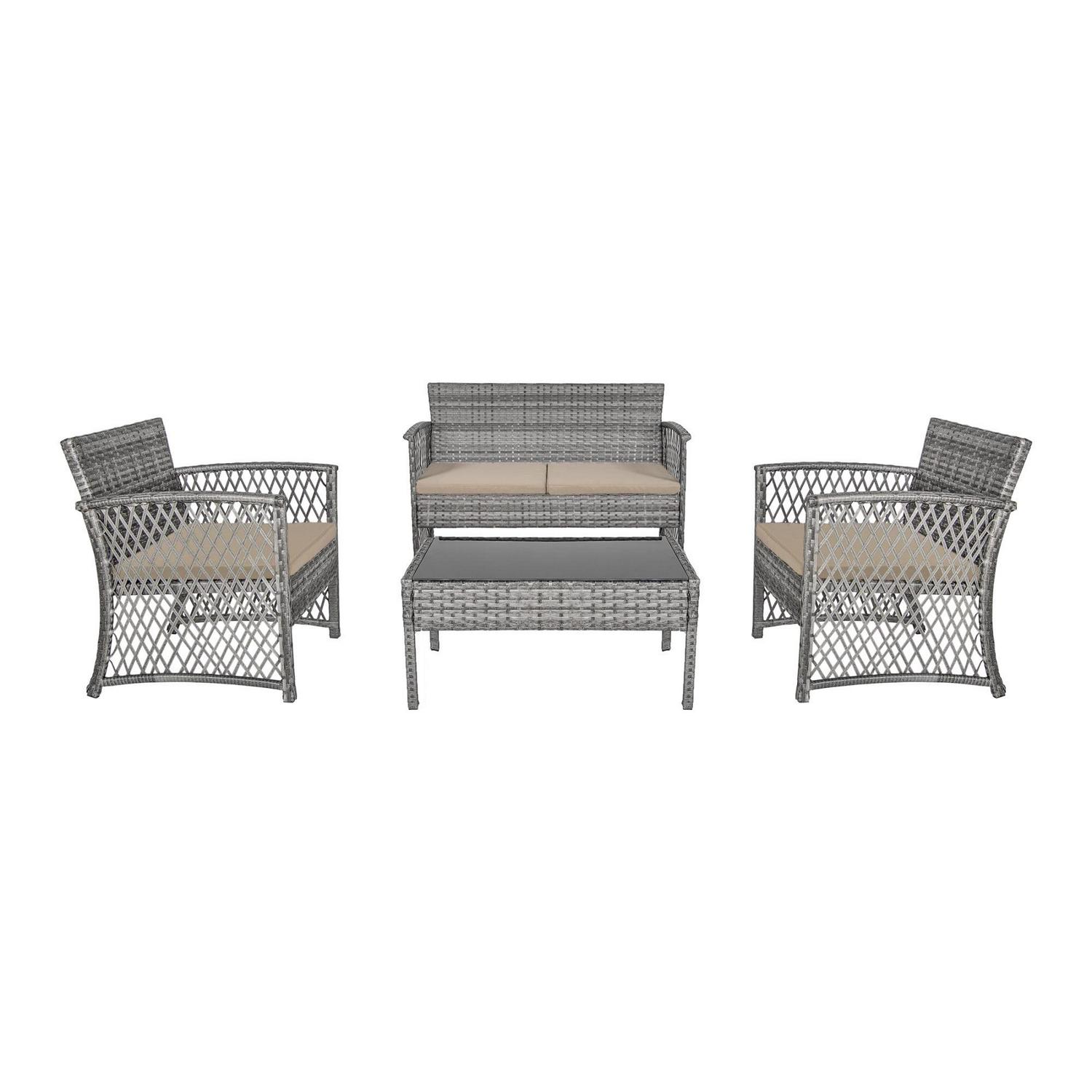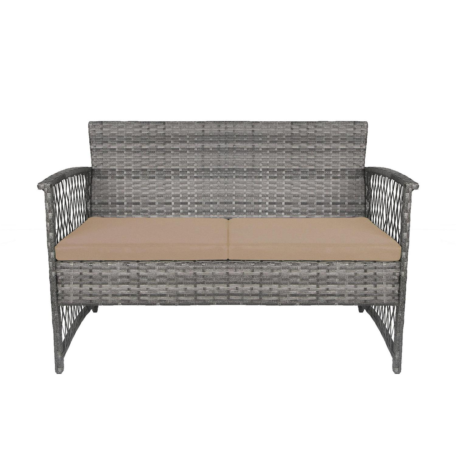 Westin Outdoor 4-Piece Rattan Wicker Patio Sofa Set with Cushions, Gray/Beige