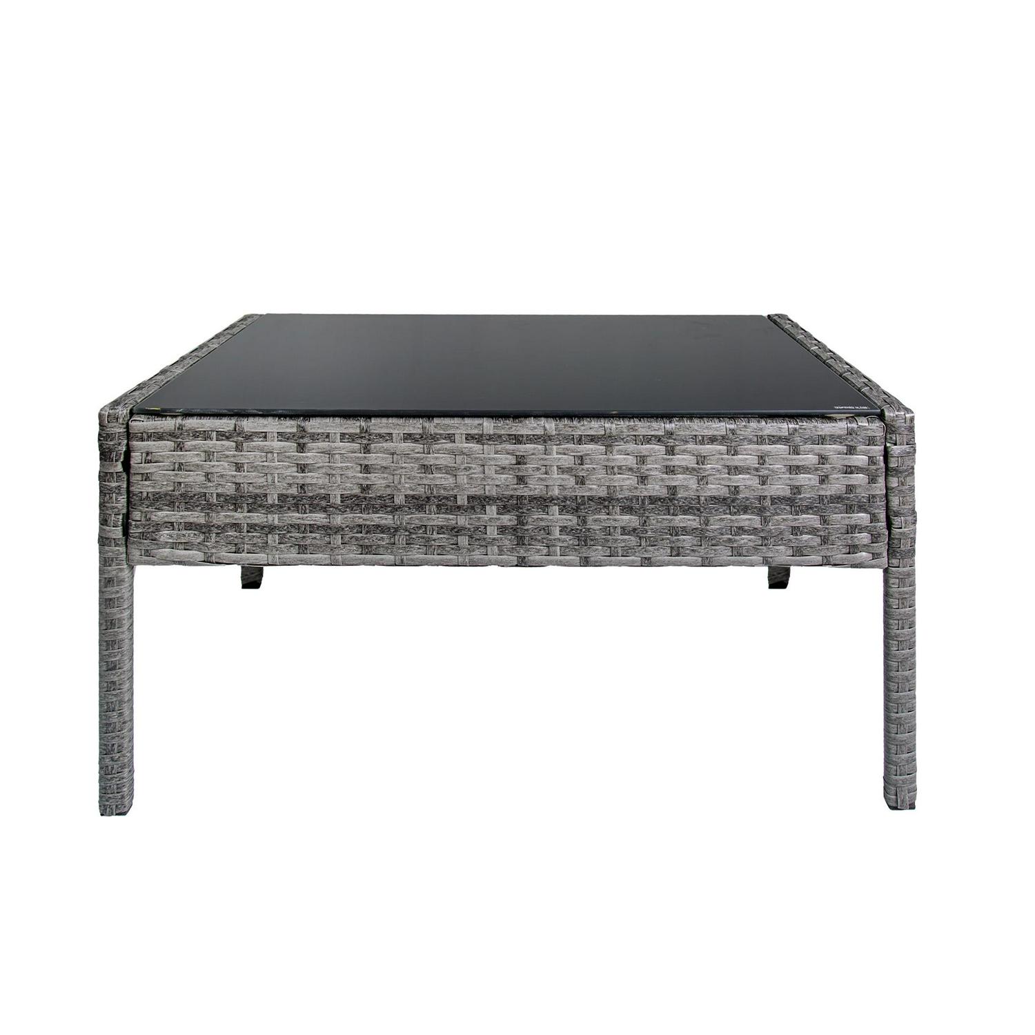 Enjoy the breeze while sitting in style with this 4 piece sofa seating set. Made with a steel frame and wather resistant rattan wicker it is sure to last for many years to come. A perfect match for any outdoor patio area.