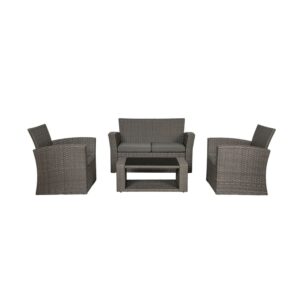 Westin Outdoor 4PC Rattan Wicker Sofa Coversation Set with Cushions UV Weather Resistant, Gray/Gray