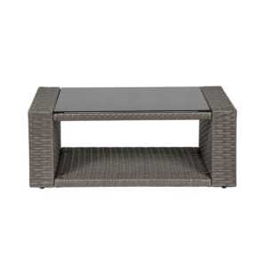 The ideal set up for any casual outdoor hangout, this 4 Piece Patio Conversation Sofa Set. Crafted with durable steel frame and all weather resistant rattan wicker. Place drinks and appetizers in the tempered glass coffee table top and sit around for ours in the well padded cushions seats. A must have for any outdoor patio living area.