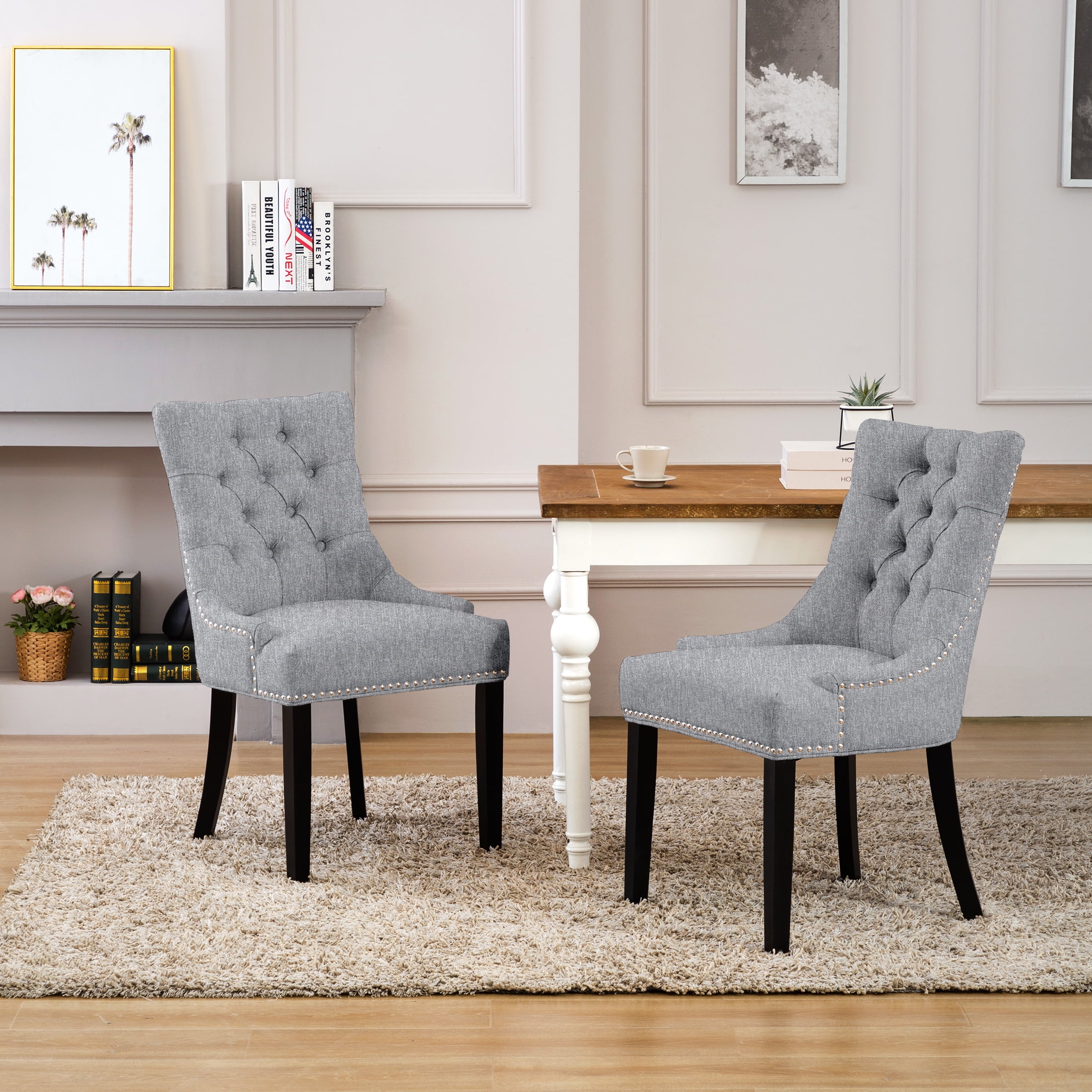 Providing a sophisticated and timeless look, this Tufted Wingback Upholstered Dining Chair provides any Dining Room with elegant seating and inspire guest to linger long after the last course. Its beautifully designed button tufted backrest and a barrel-curved back provide not only comfort but long lasting style. Ideal for any Dining Room, Kitchen, Living Room or Bedroom area