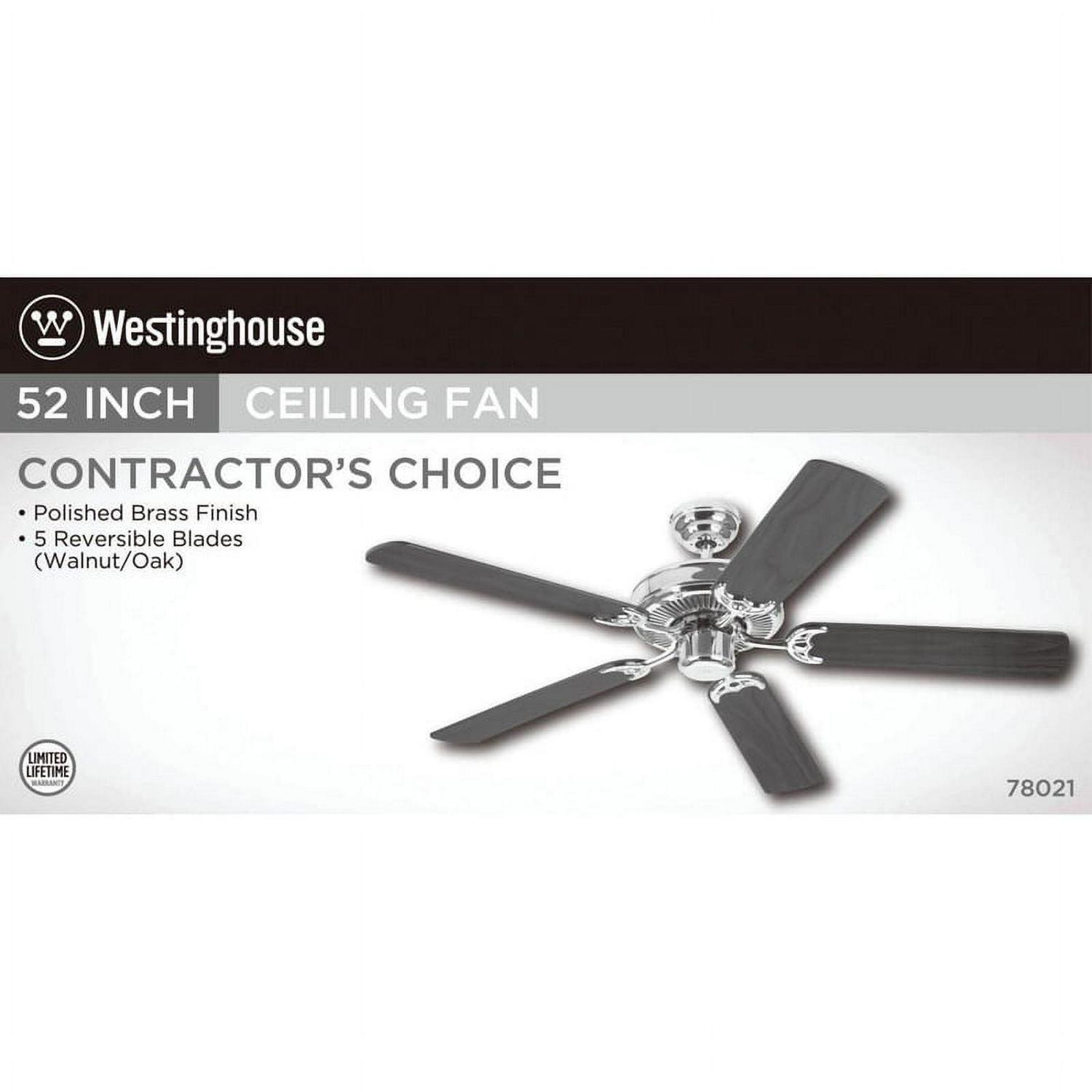 Westinghouse 78021 Contractor’s Choice Ceiling Fan, 52 , Polished Brass