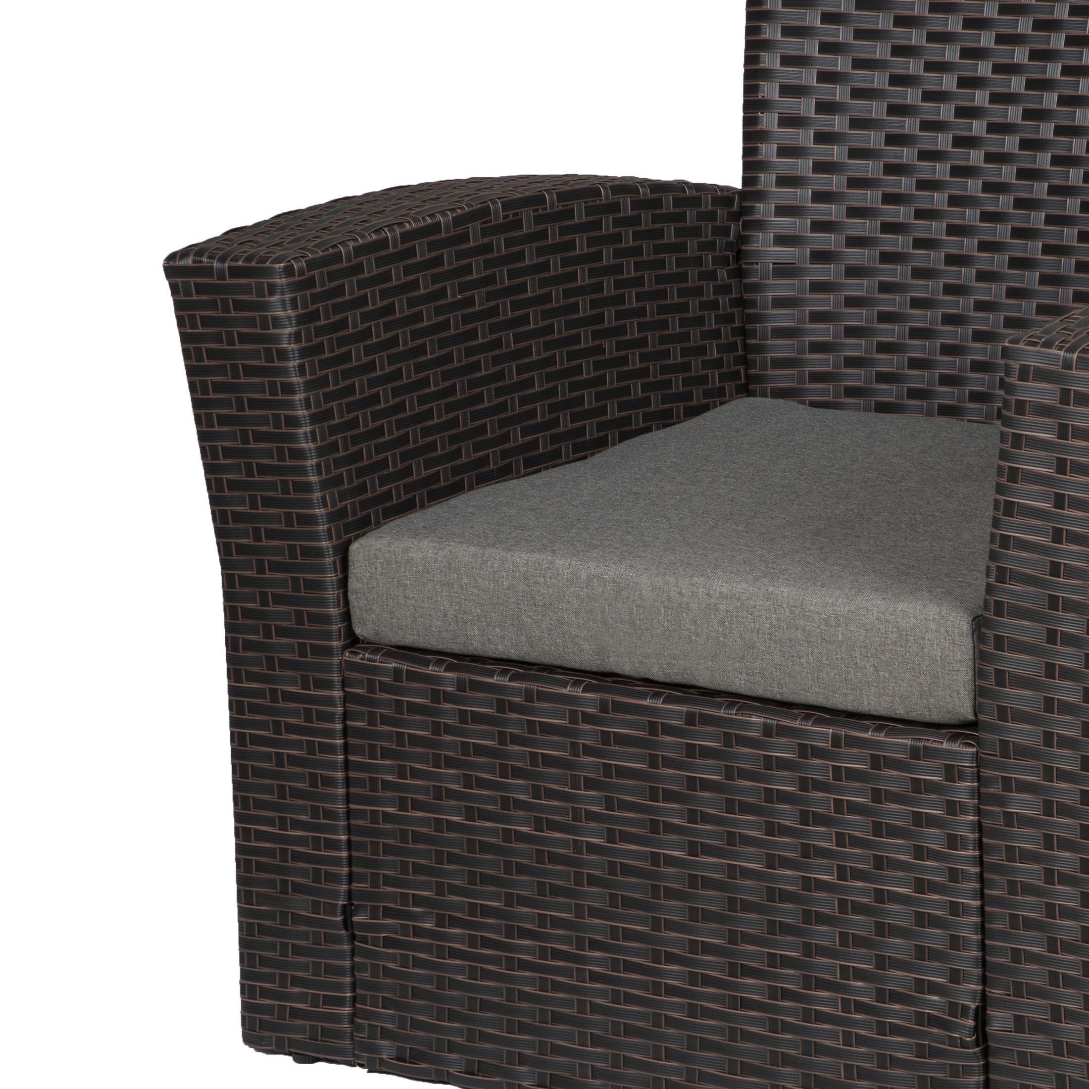 WestinTrends 4pc Outdoor Furniture Conversation Sofa Set with Loveseat, Cofee Table and Cushions, All Weather UV Resistant Rattan Wicker Patio Chairs, Chocolate/Gray
