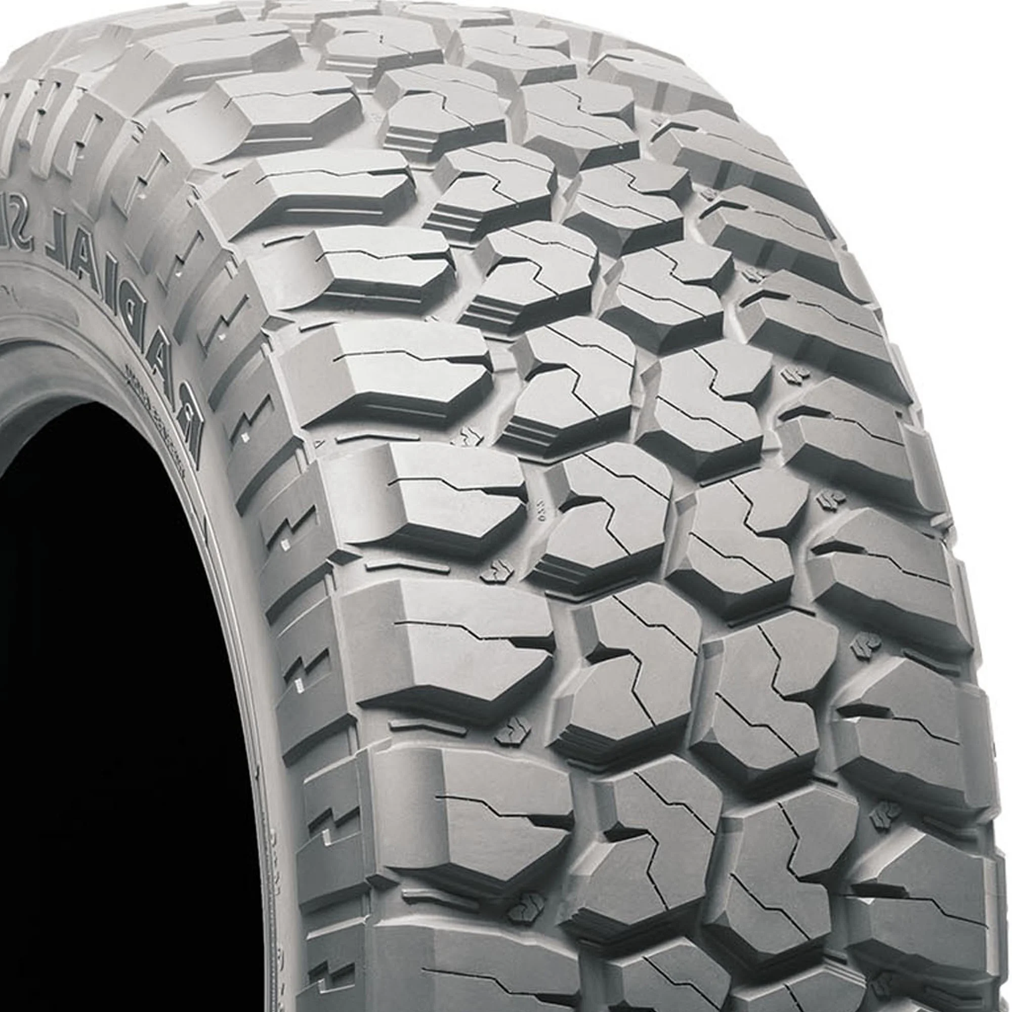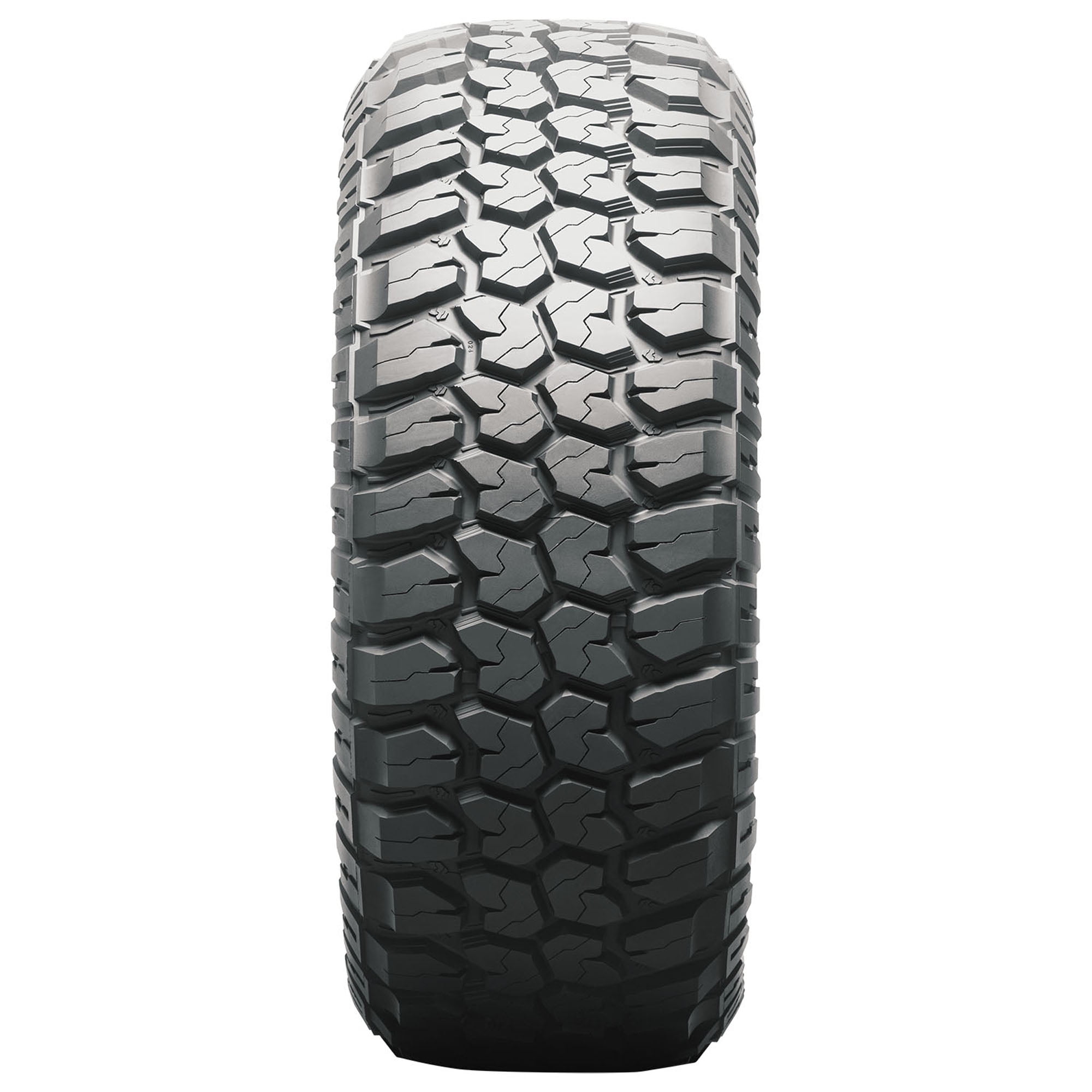 Designed for use on Jeeps, light trucks, and SUVs Built with rugged and rigid tread blocks that enhance traction and performance off-road Optimized void ratio forces mud, dirt, rocks, stones, water, slush, and other debris out of the tread for consistent traction and to protect the casing from damage Rigid, offset shoulder blocks boost grip in mud, snowy, and tough terrains Steel-belted construction increases load carrying capacity and boosts durability Size: LT265/70R17 Load Range: E Product May Vary From Picture Wheel/Rim Not Included