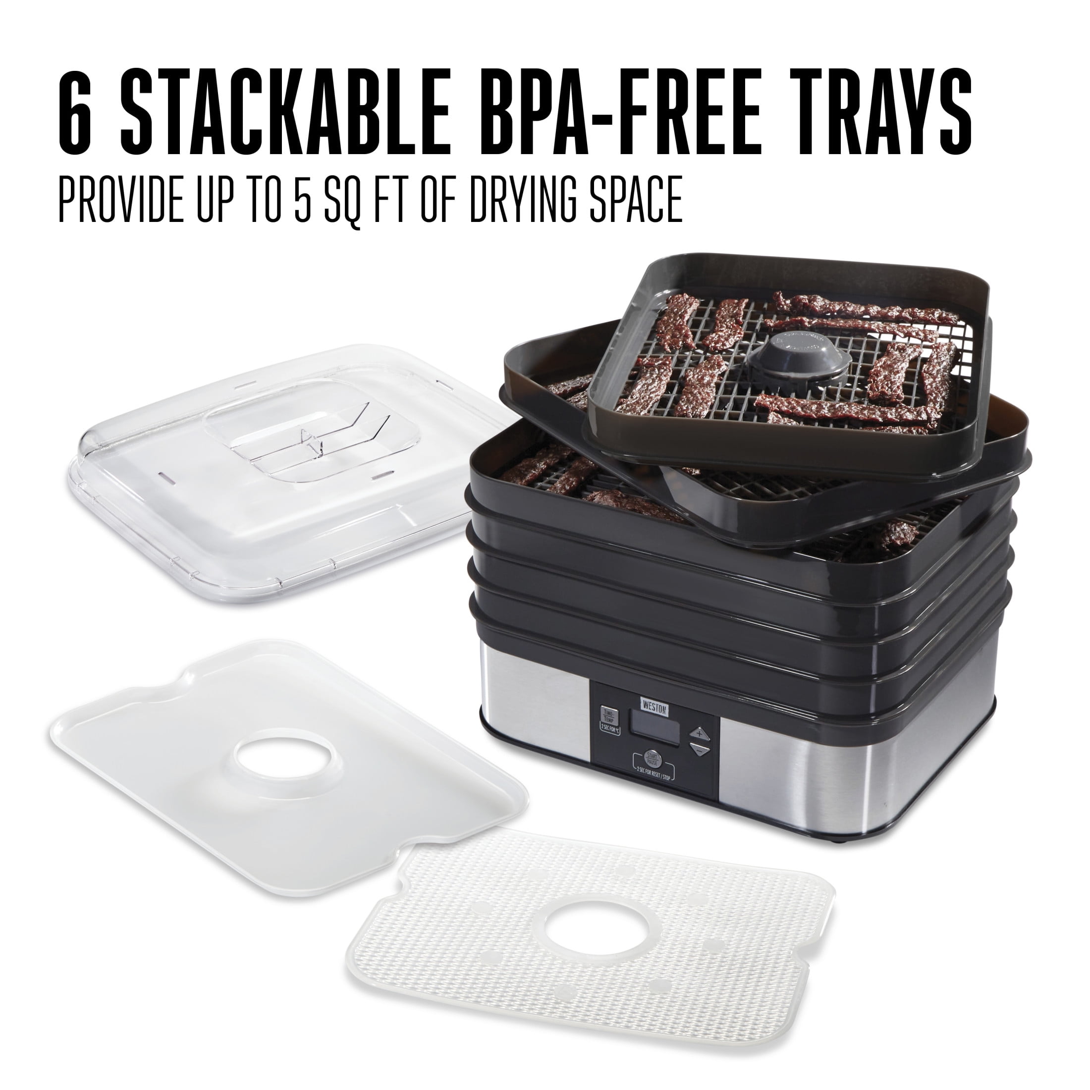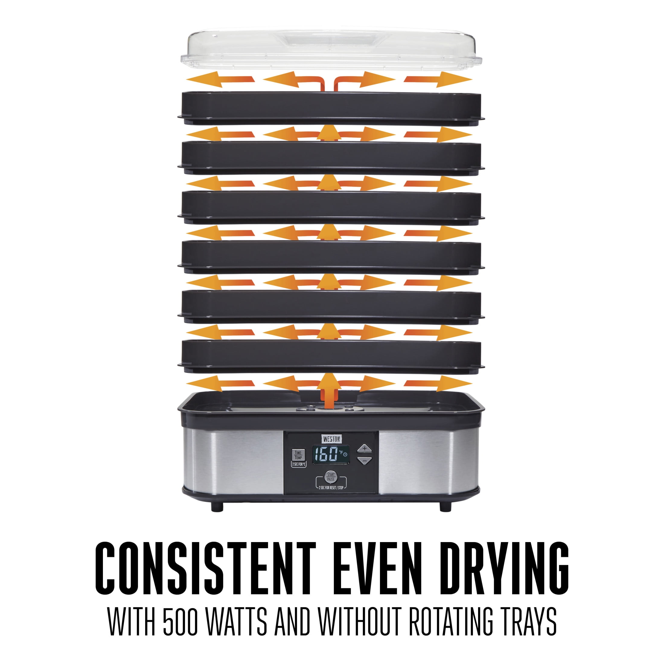 Weston 6 Tray Electric Food Dehydrator Machine with Digital Timer, Adjustable Thermostat, 500 Watts, Black