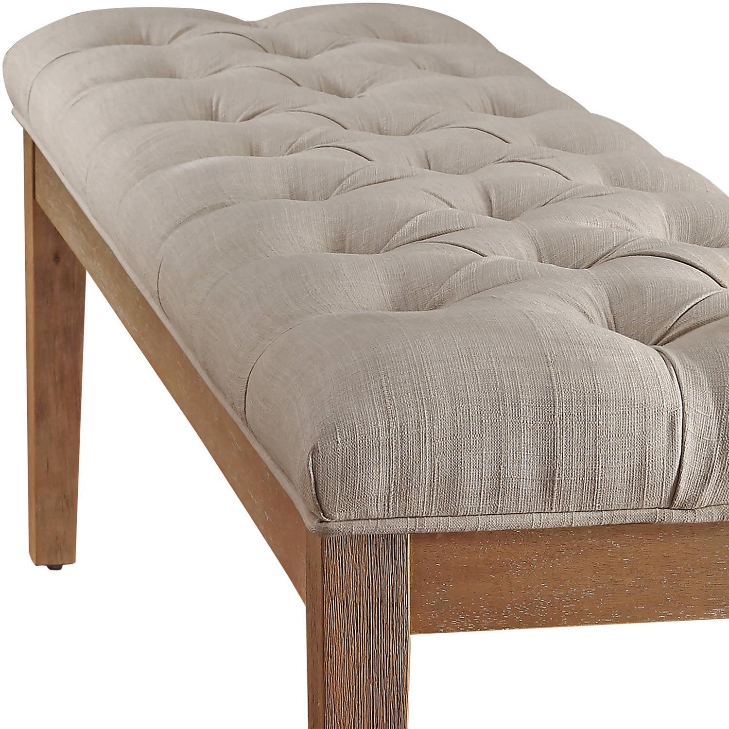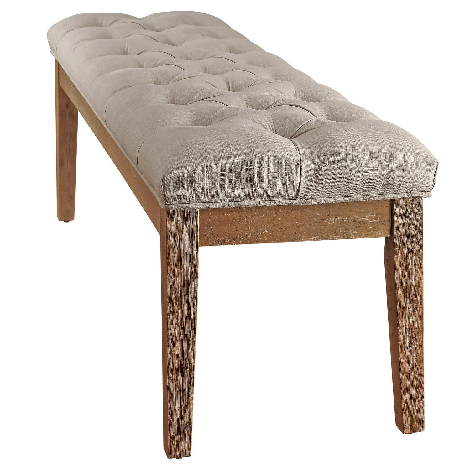 Weston Home 52 W Bench with Natural Wood, Beige Linen