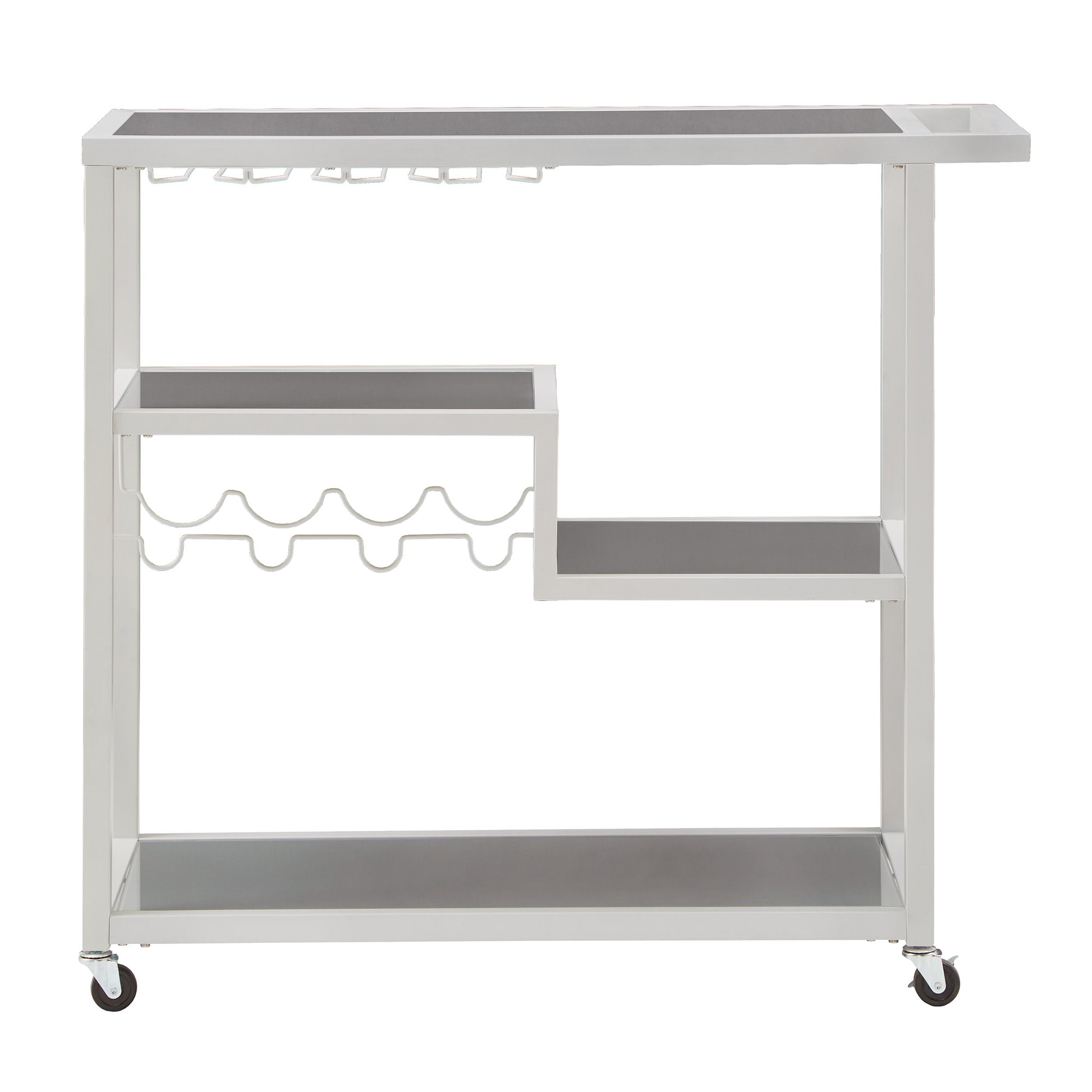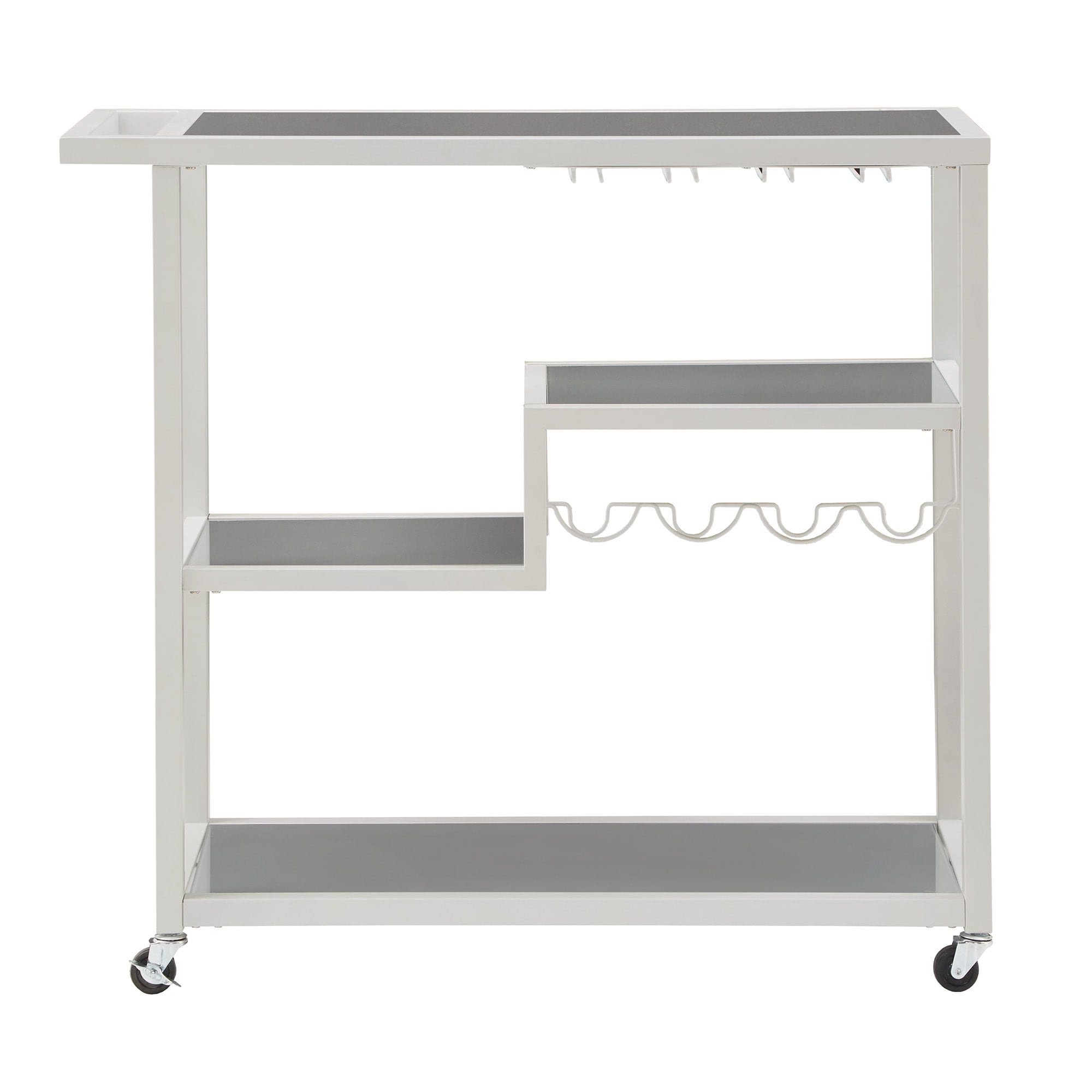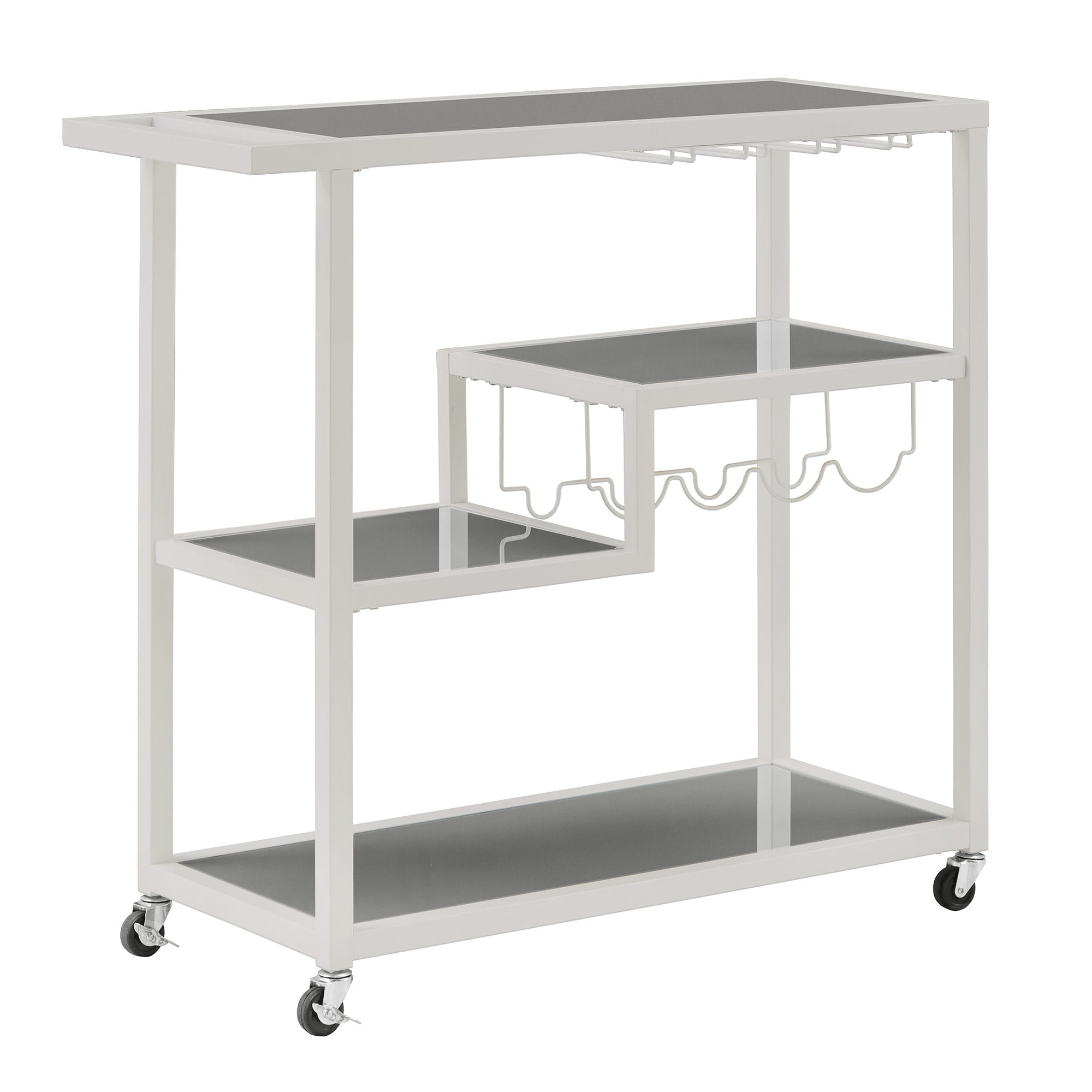 Weston Home Aleena Glass Top Metal 37″ H Bar Cart, White