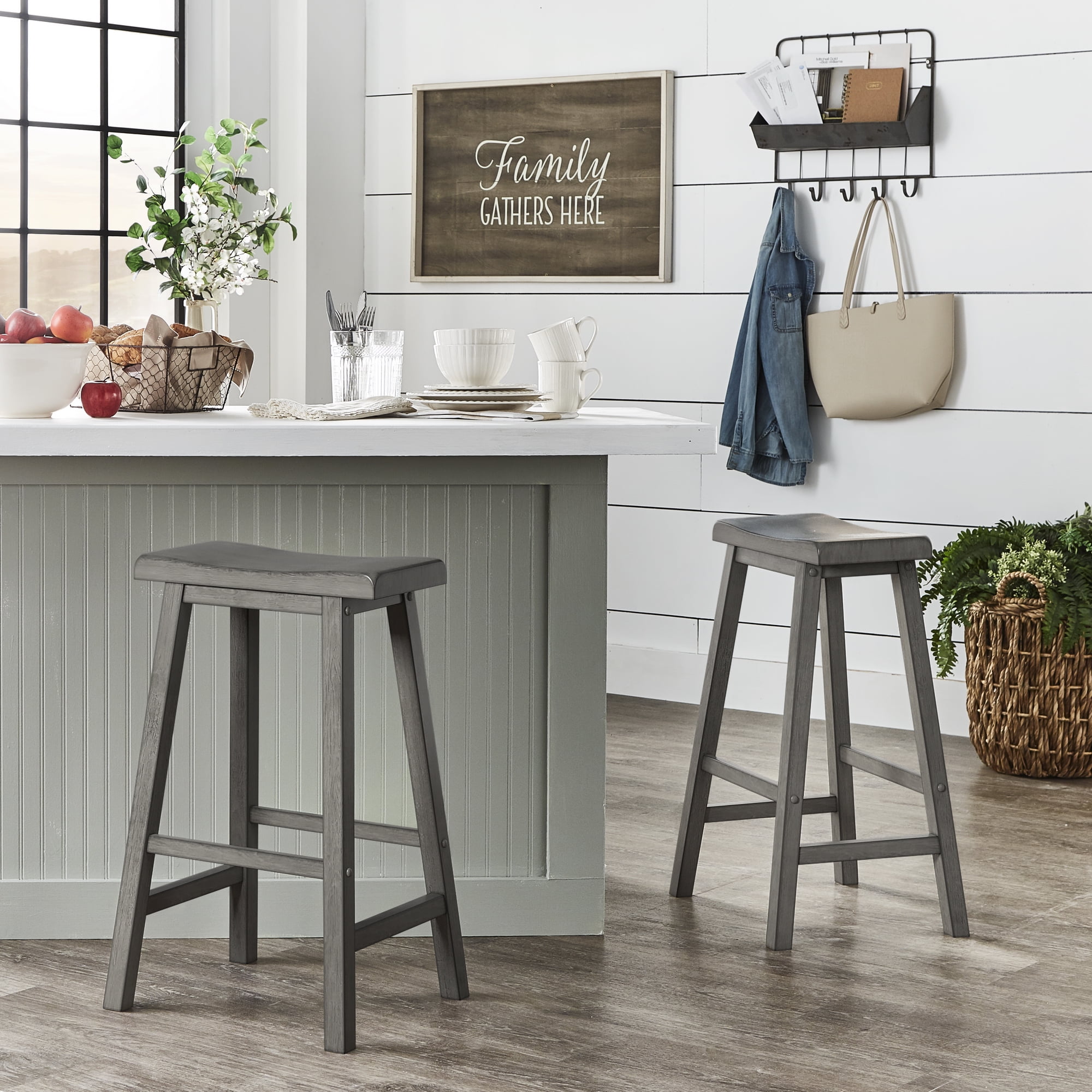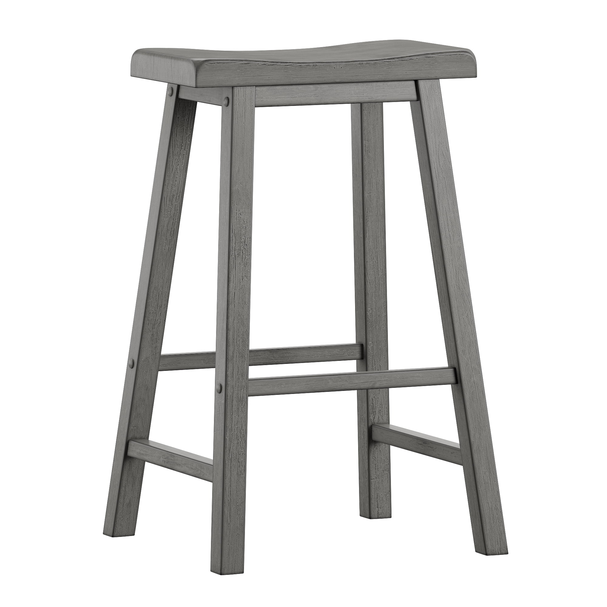 Includes two (2) bar height stools Oak, antique sage green, antique black, antique dark denim, antique grey, antique berry red, or antique white finish options Traditional saddleback style Durable and eco-friendly rubberwood construction Weight tested up to 250 pounds Seat: 17.7 inches wide x 9.3 inches deep x 28.6 inches high Base: 18 inches wide x 15.6 inches deep Overall: 18 inches wide x 15.6 inches deep x 28.6 inches high Includes two (2) bar height stoolsOak, antique sage green, antique black, antique dark denim, antique grey, antique berry red, or antique white finish optionsTraditional saddleback styleDurable and eco-friendly rubberwood constructionWeight tested up to 250 poundsSeat: 17.7 inches wide x 9.3 inches deep x 28.6 inches highBase: 18 inches wide x 15.6 inches deepOverall: 18 inches wide x 15.6 inches deep x 28.6 inches high