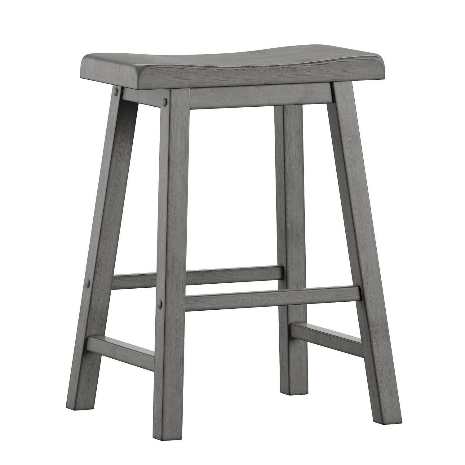 Weston Home Ashby Saddle Seat Backless Wood Counter Stools, Set of 2, Antique Grey