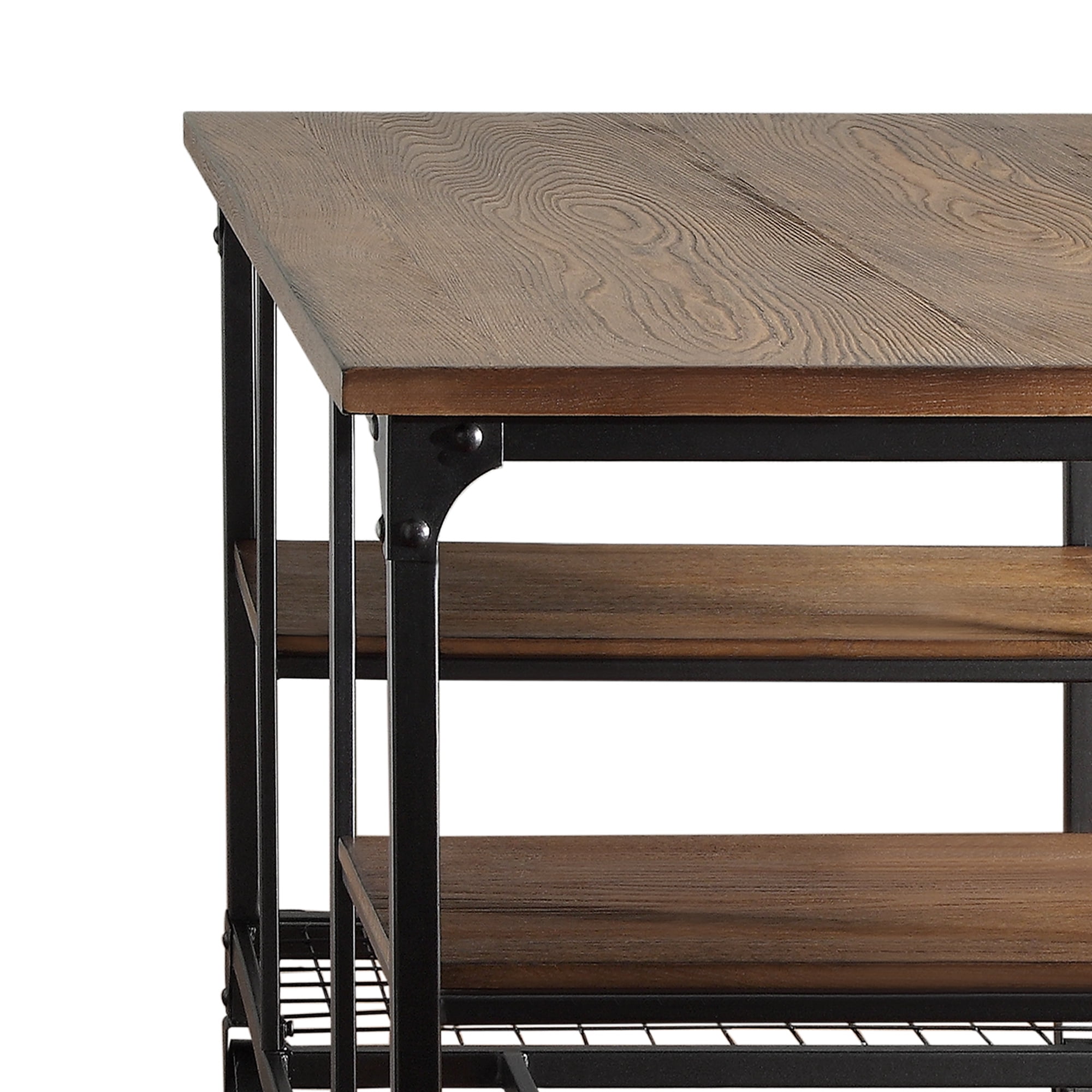 Work ethic comes naturally with the Weston Home Avery Writing Desk. Designed with mixed materials, this desk features a strong iron framework and wooden shelves with veneers in a weathered brown finish. Two open shelves on each side provide room for the books and supplies you need to keep close at hand. Old-fashioned casters allow you to push this desk over to the wall when you need more space for other activities.This great industrial style design will compliment and interiors decor design.