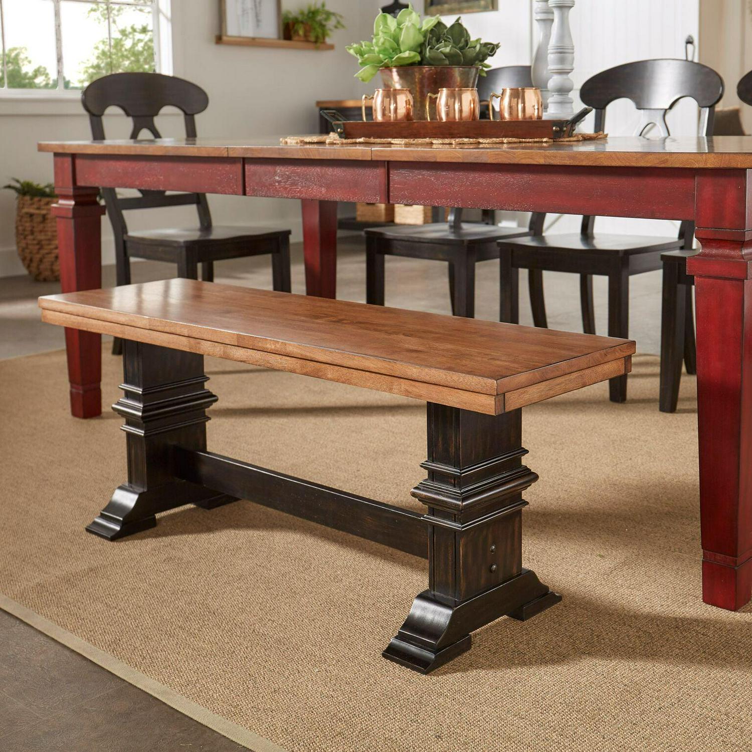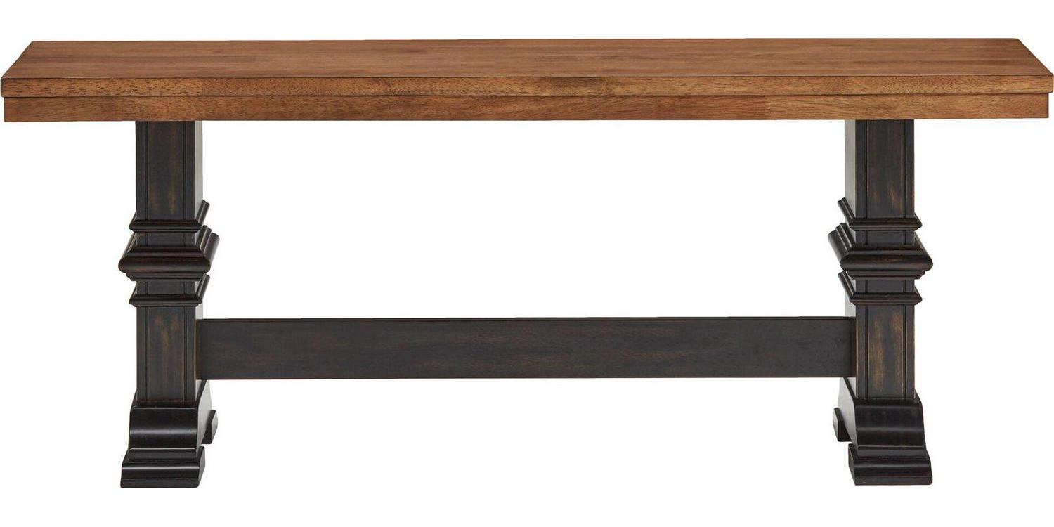Supported by an intricately carved trestle base, the Humble Nest Countryside Farmhouse Dining Bench with Trestle Leg is a stately way to complete a rustic or country chic dining table. The bench is durable enough to hold up to the effects of daily dining, thanks to its solid hardwood construction. A carefully applied finish in your choice of available colors enhances the visual appeal of the timeless design.