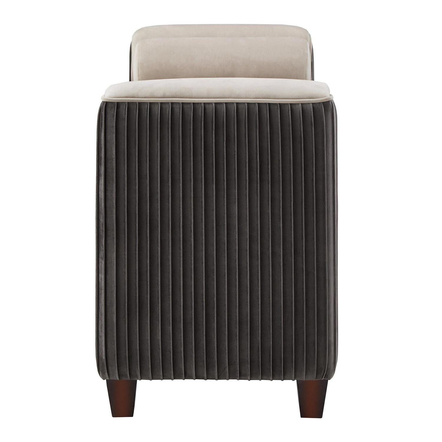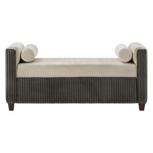 Weston Home Bergman Chesterfield Pleated Velvet 54 Wide Bench with Pillows, Taupe and Grey