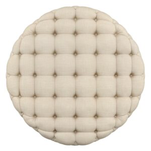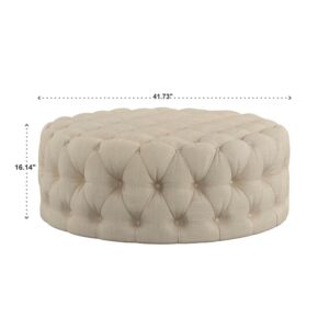 Weston Home Bowman Linen Round Button Tufted Ottoman with Casters, Beige
