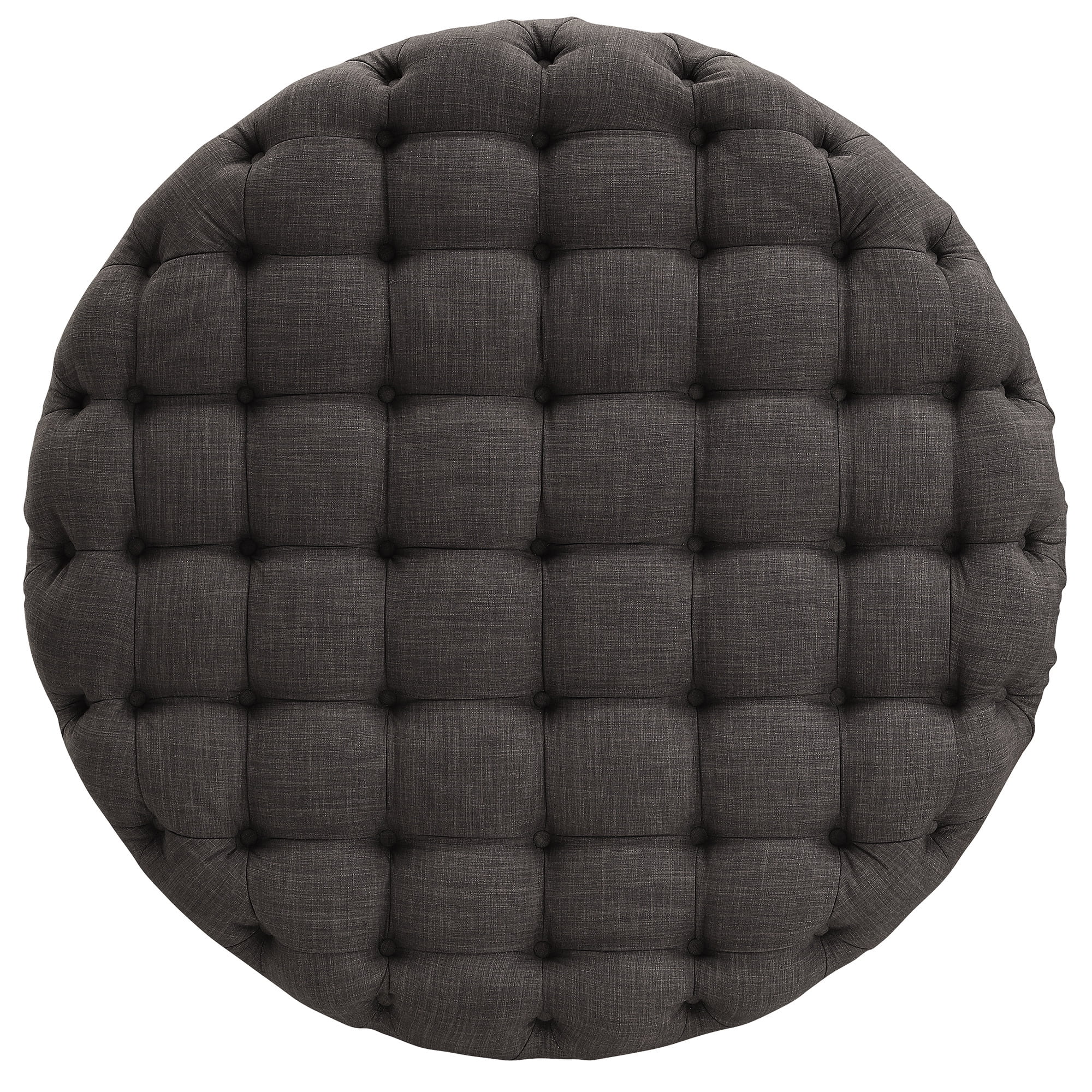 Includes one grey (1) round ottoman Overall dimensions: 41.75 in. diameter x 16 in. height All-over button tufting Soft fabric upholstery Five (5) non-locking casters Crafted with plywood, fabric, and foam Ships in one (1) box
