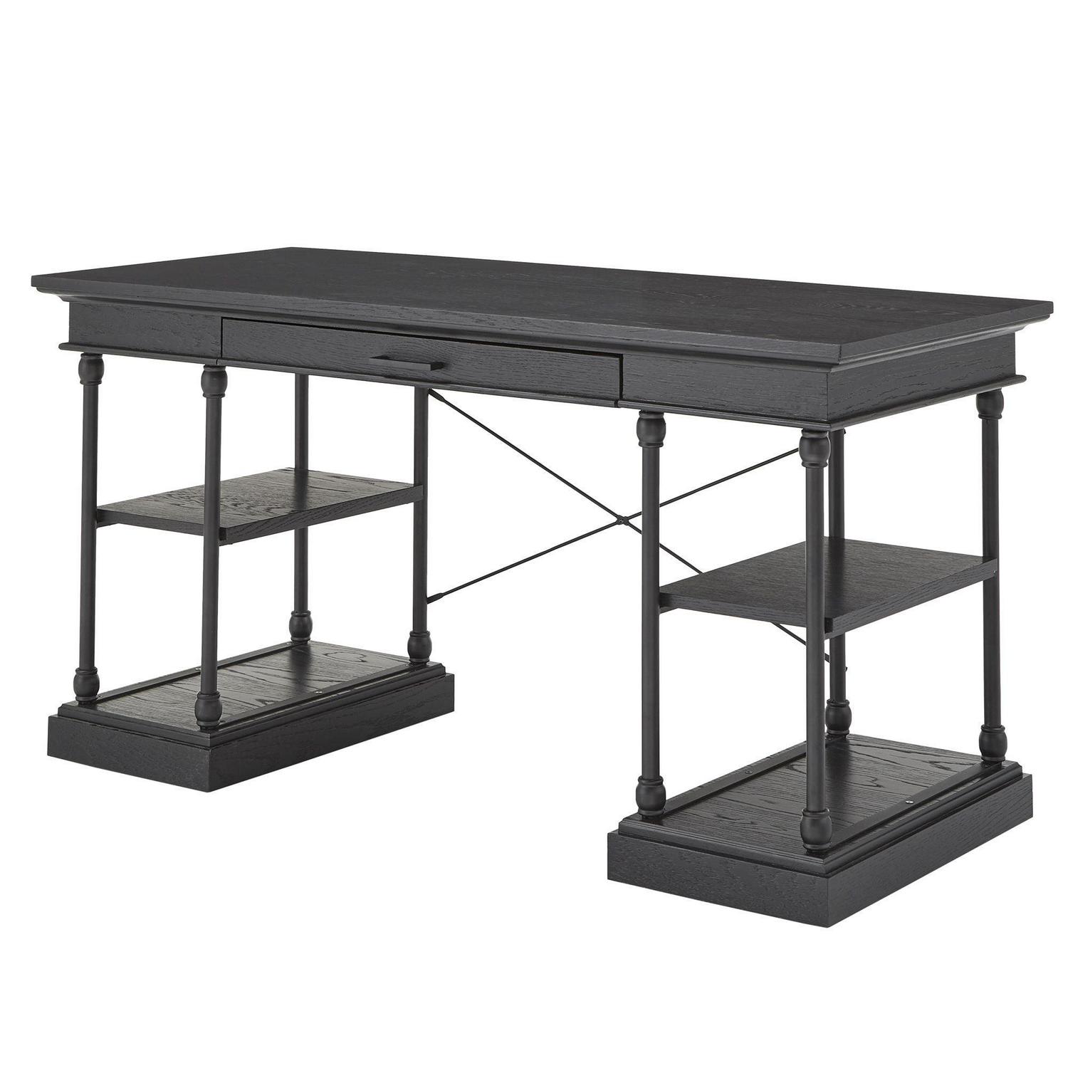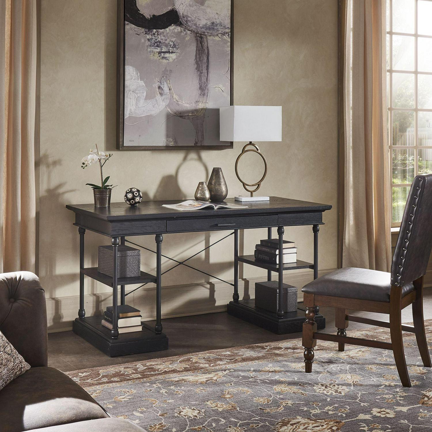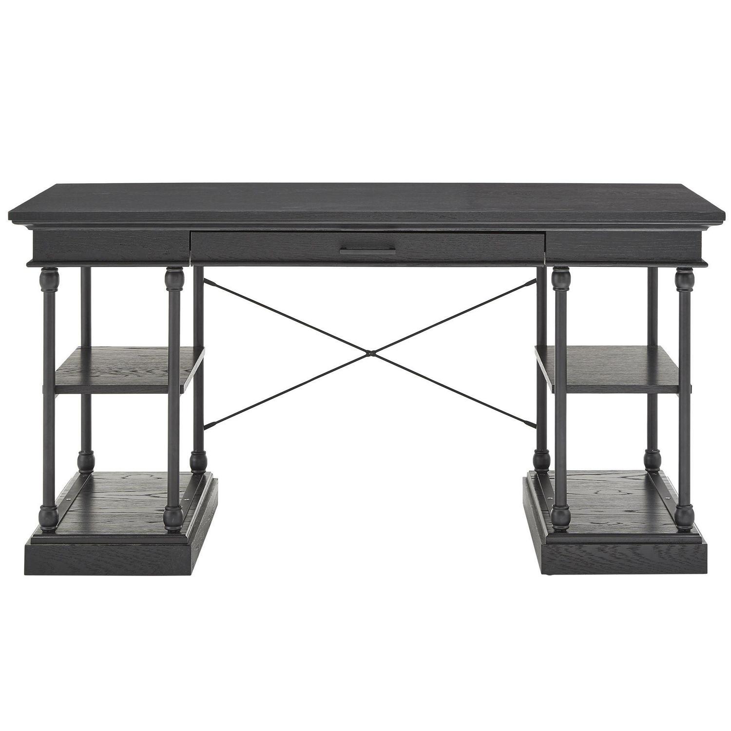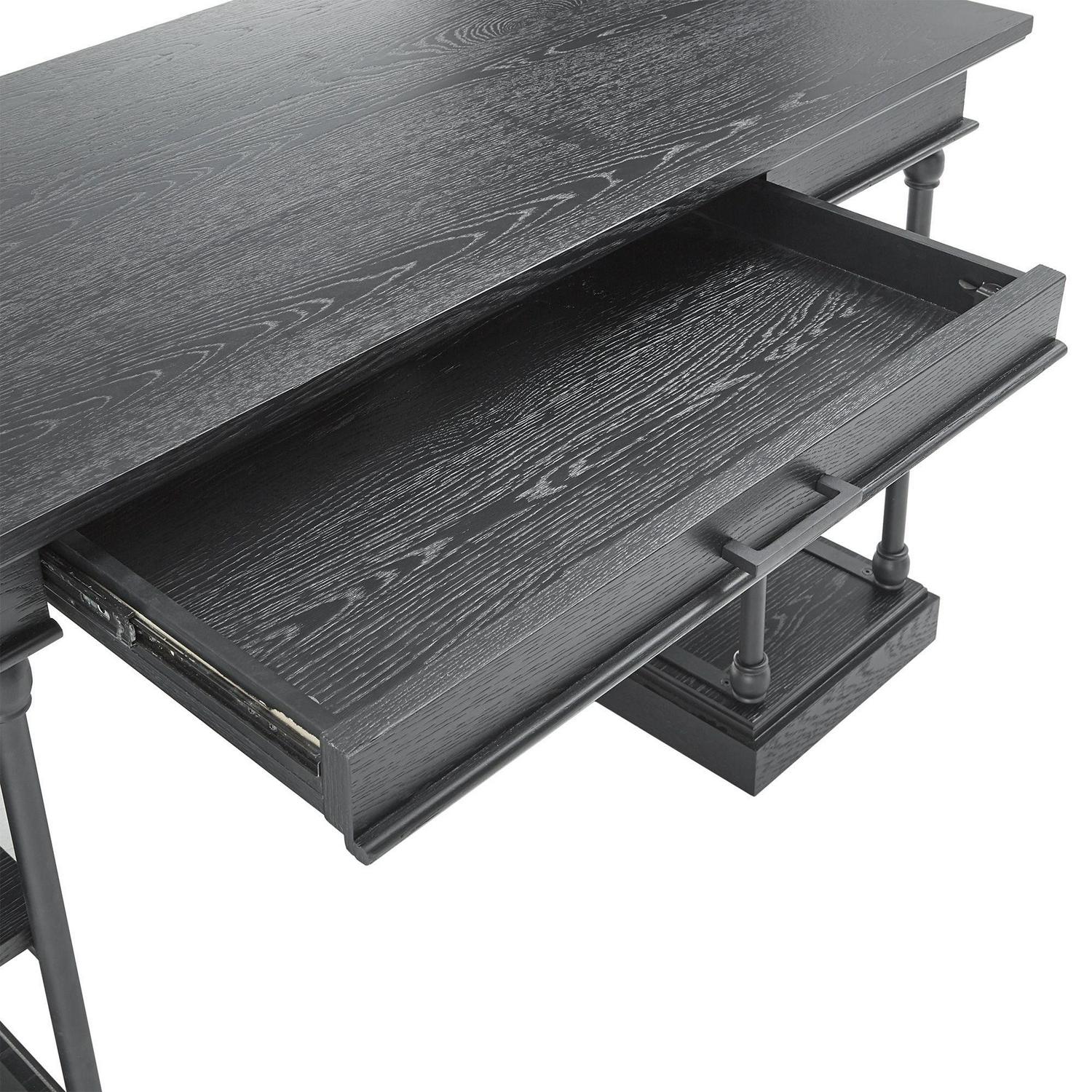 Add industrial flare to your living room with the Cabana 1-Drawer Writing Desk. With a powder coated black metal frame and classic construction, this desk will add character to your space. The open shelving offers a place for decor items, books and more, while the decorative, metal X-cross detailing provides styled accenting to this desk. Various color options allow you to match this piece to any existing color scheme. Pair with the Cabana Side Table, Cabana Sofa Table and the Cabana Bookcase to complete the look.Weston Home Cabana gives by-gone eras new life with historically inspired designs that reach across the centuries. Quietly elegant, old-world grandeur instills these pieces with a livable luxury that’s in step with contemporary life. Click to see more.