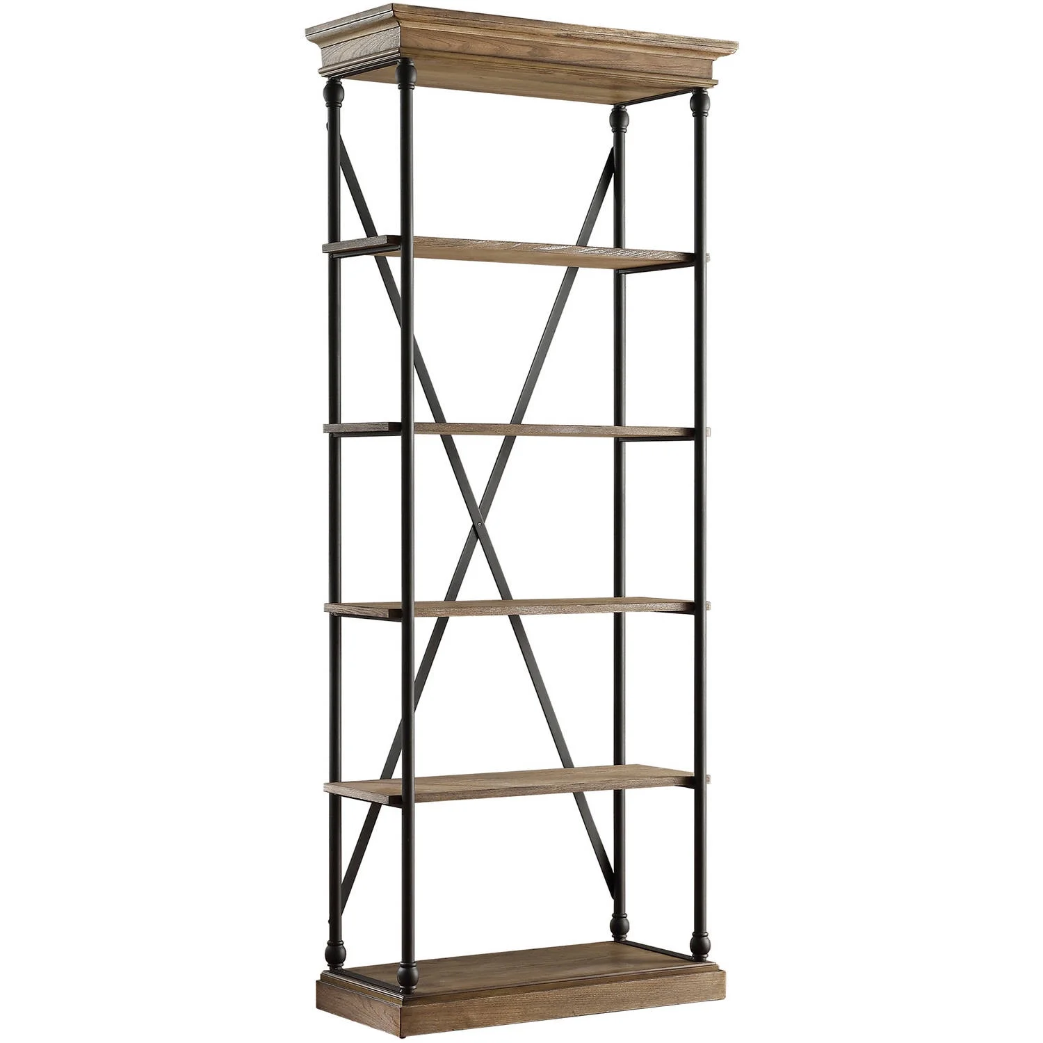 Weston Home Cabana 5 Shelf Wood and Iron X-Back Bookcase, Brown