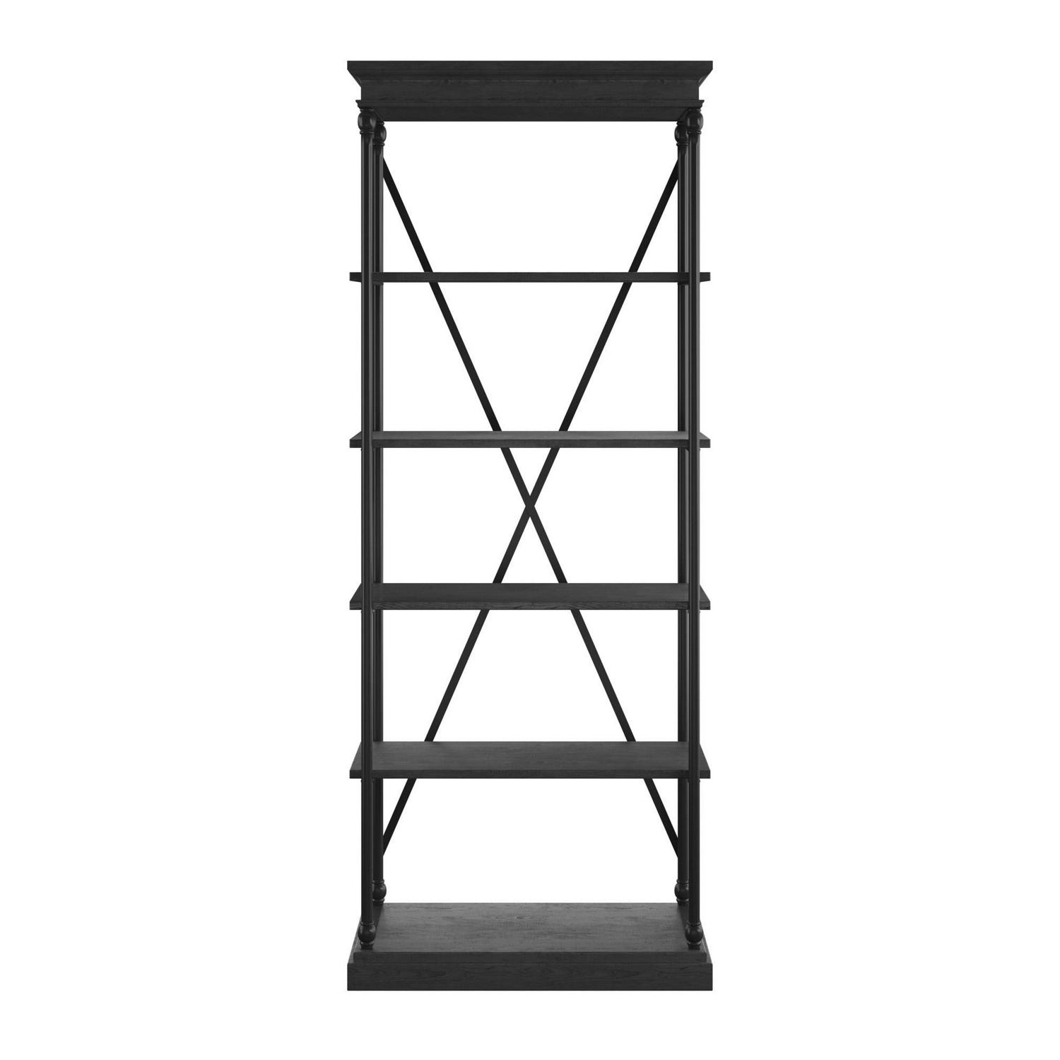 Add industrial flare to your living room with the Cabana X-Back Bookcase. With a powder coated black metal frame and classic construction, this bookcase will add some character to your space. The open shelving offers a place for displaying treasures, books and more, while the metal X-cross detailing provides styled accenting. Various color options allow you to match this piece to any existing color scheme. Pair with the Cabana Writing Desk to complete the look.Weston Home Cabana gives by-gone eras new life with historically inspired designs that reach across the centuries. Quietly elegant, old-world grandeur instills these pieces with a livable luxury that’s in step with contemporary life. Click to see more.